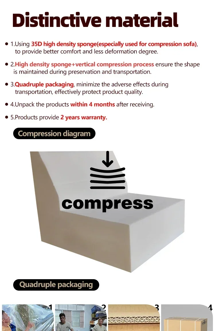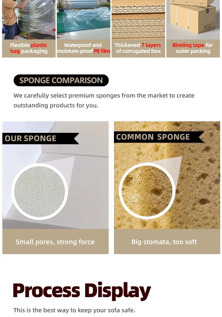 1.Using 35D high density sponge (especially used for compression sofa) to provide better comfort and less deformation degree.