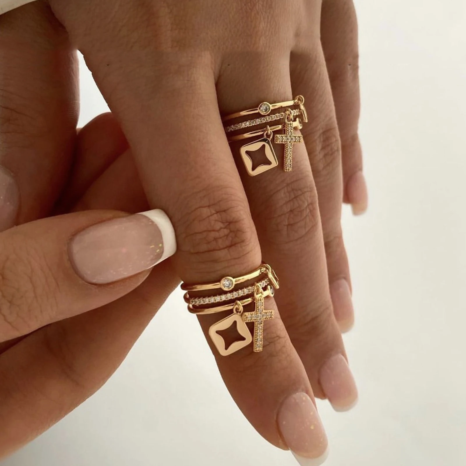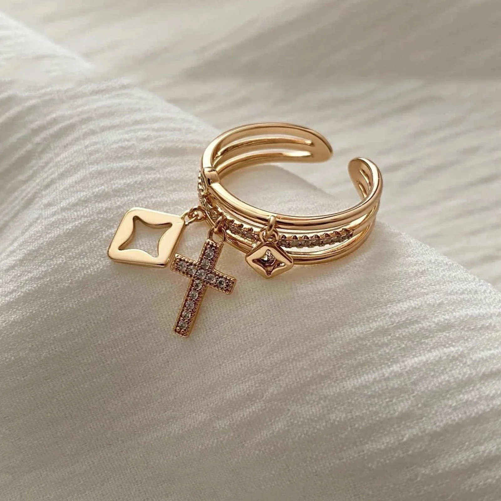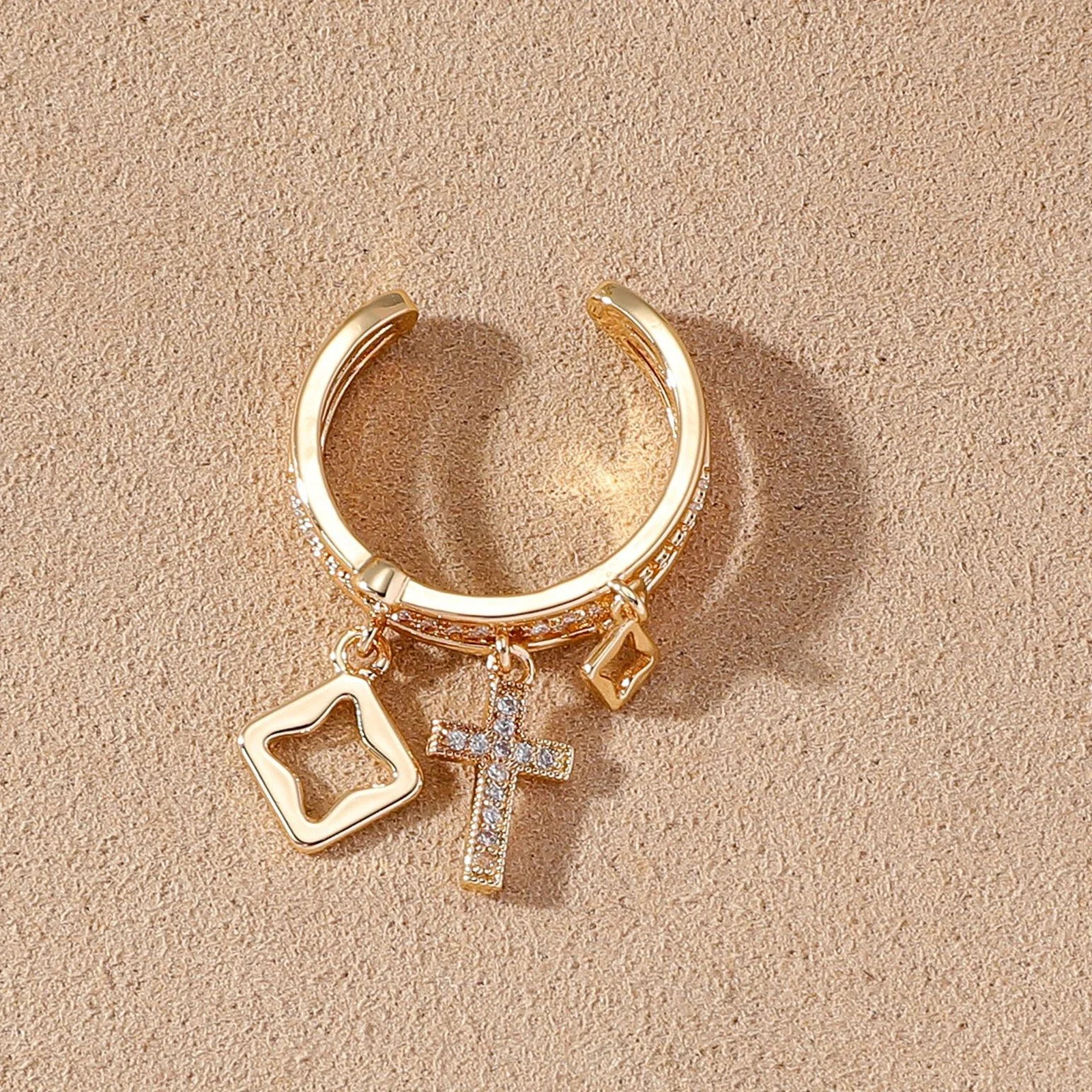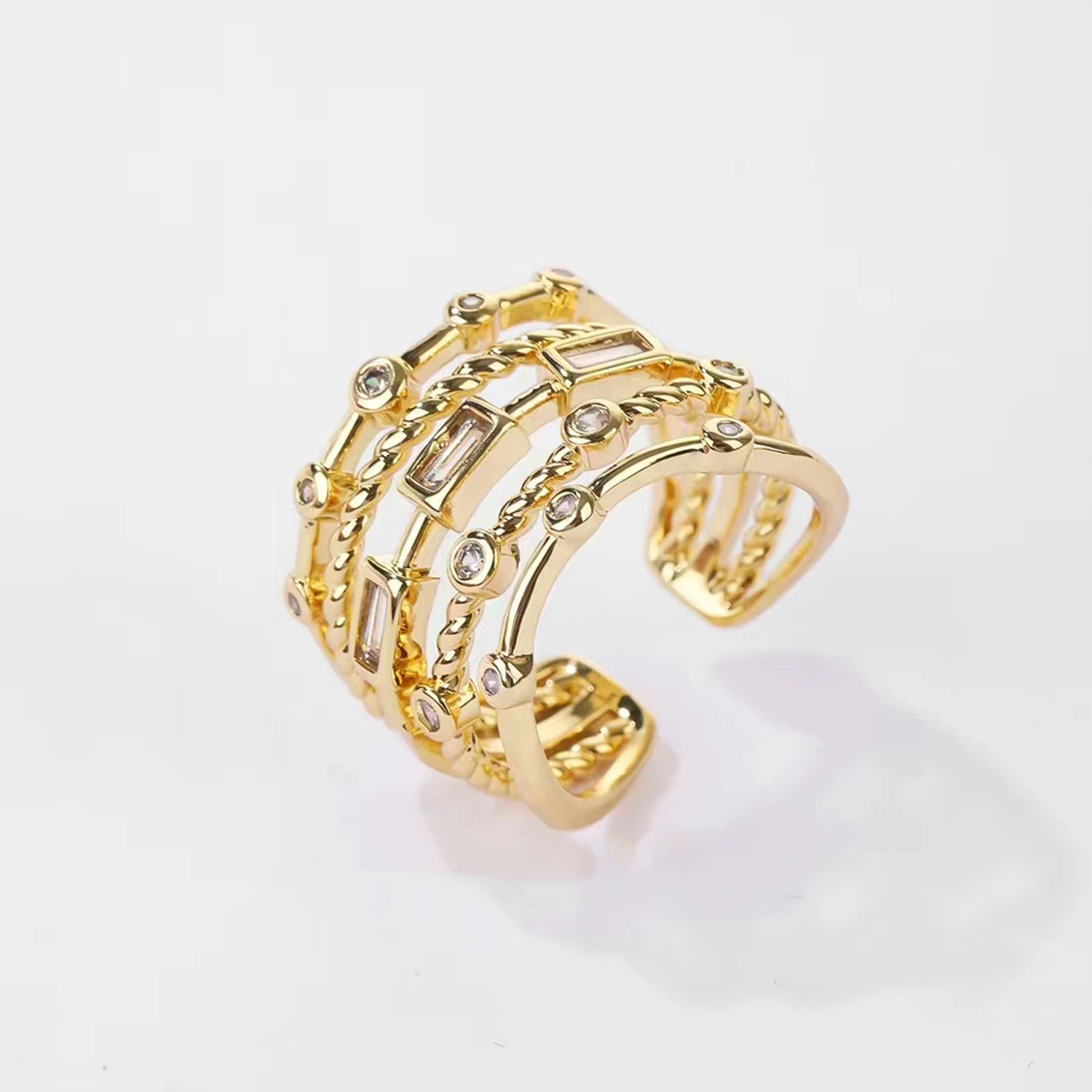 2 reviews for Nwe 18 K Gold Plated Sun Rings for Women Natural Stone Inlaid in Hollow Metal Texture Ring Trendy Jewelry
