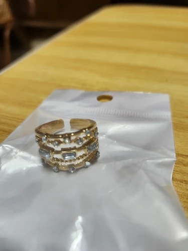 2 reviews for Nwe 18 K Gold Plated Sun Rings for Women Natural Stone Inlaid in Hollow Metal Texture Ring Trendy Jewelry