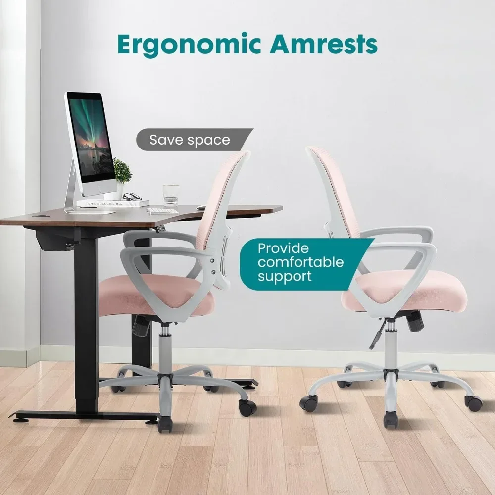 Office Chair,Ergonomic Mid-Back Mesh Rolling Work Swivel Desk Chairs with Wheels,Comfortable Lumbar Support,Pink