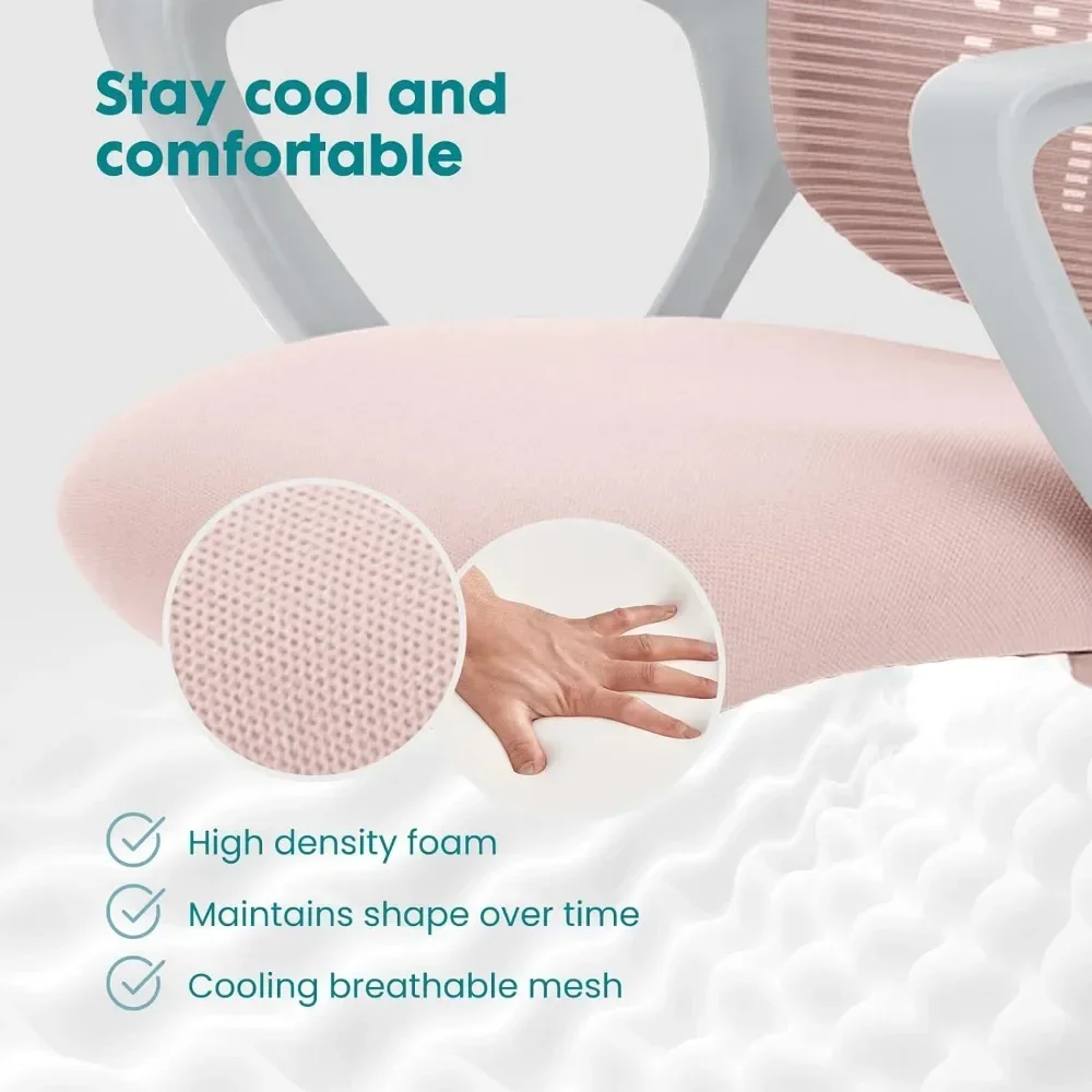 Office Chair,Ergonomic Mid-Back Mesh Rolling Work Swivel Desk Chairs with Wheels,Comfortable Lumbar Support,Pink