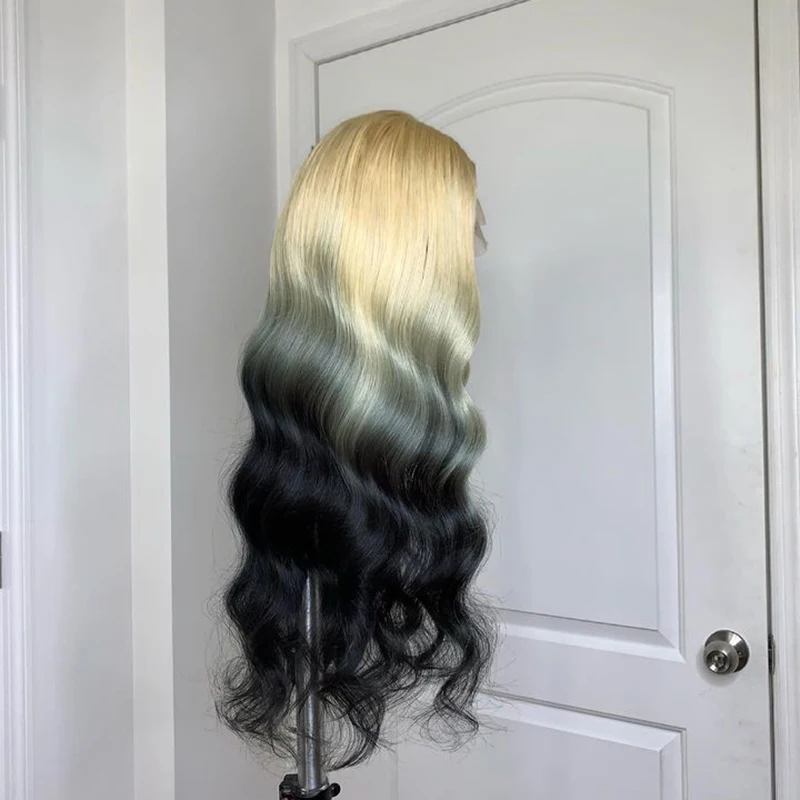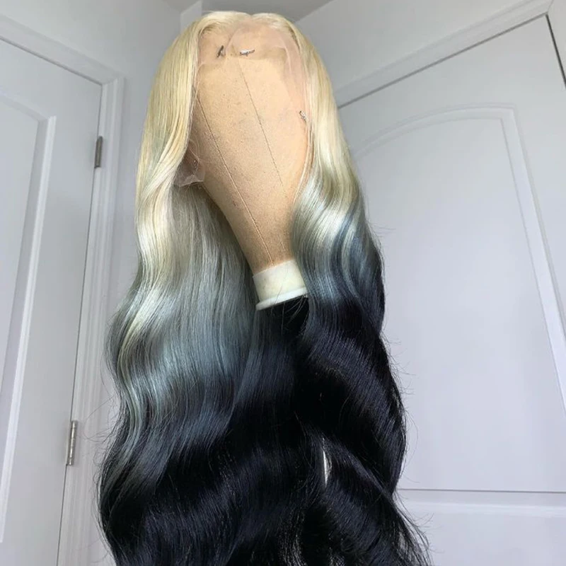 1 review for Ombre Blonde to Black Preplucked Long Lace Front Wig Body Wave 180%Density Hairline Glueless For Women Synthetic Fiber
