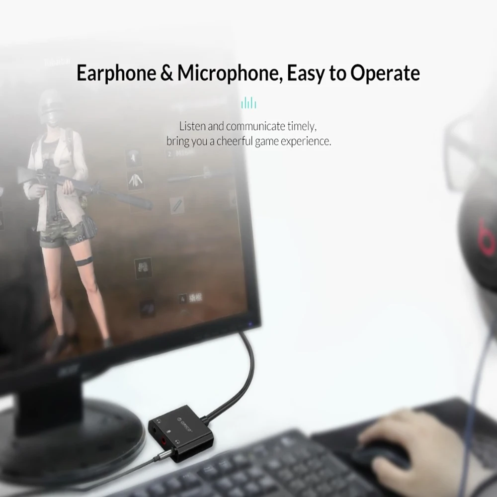 (3). Have an external sound card adapter when you need to connect more than one microphone or headphone on your PC. You can experience a higher level of audio effects through this product.