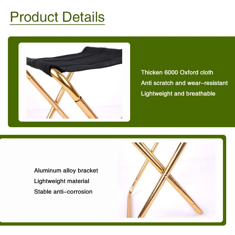 Outdoor Camping Chair Golden Aluminum Alloy Folding Chair With Bag Stool Seat Fishing Camping