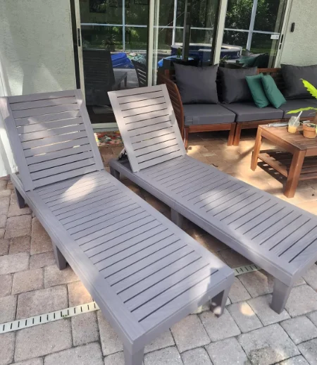 Adjustable Comfortable Outdoor Loungers:This chaise lounge backrest with 5 adjustable position can adjust the back to the most comfortable angle for your body. Classical and contemporary design, great set of kids and adult chaise lounge with higher seat for adding more spacious and comfortable rest space.