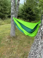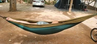 Nice hammock. Thin but holds well. Bright colors. For this price – excellent. Takes up little space.