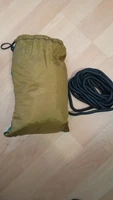 The delivery is very fast, within 15 days to Kyiv at Ukrposhta in a consolidated parcel. It matches the description, the quality looks good, but I haven’t had a chance to lie on it yet due to the weather. The hammock cover is its side pocket, so it won’t get lost. I will replace the carabiners with sharp edges with those bought as part of the hammock strap set. The ropes will find another use; the pocket doesn’t hold much, especially outdoors where there’s nowhere to get more. Thanks to the seller for the reasonable price!