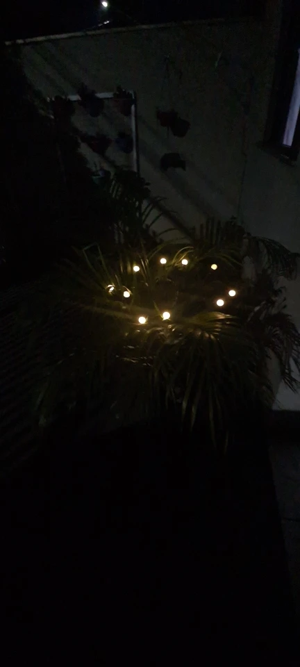 Cute. Looks good in a pot plant out on the back balcony. Lights work well