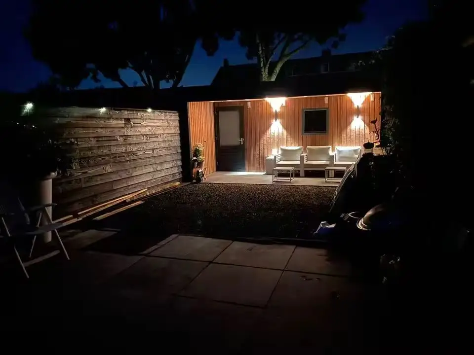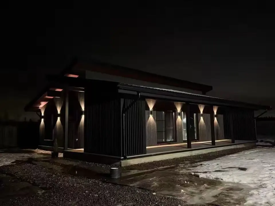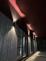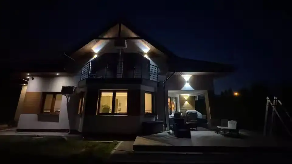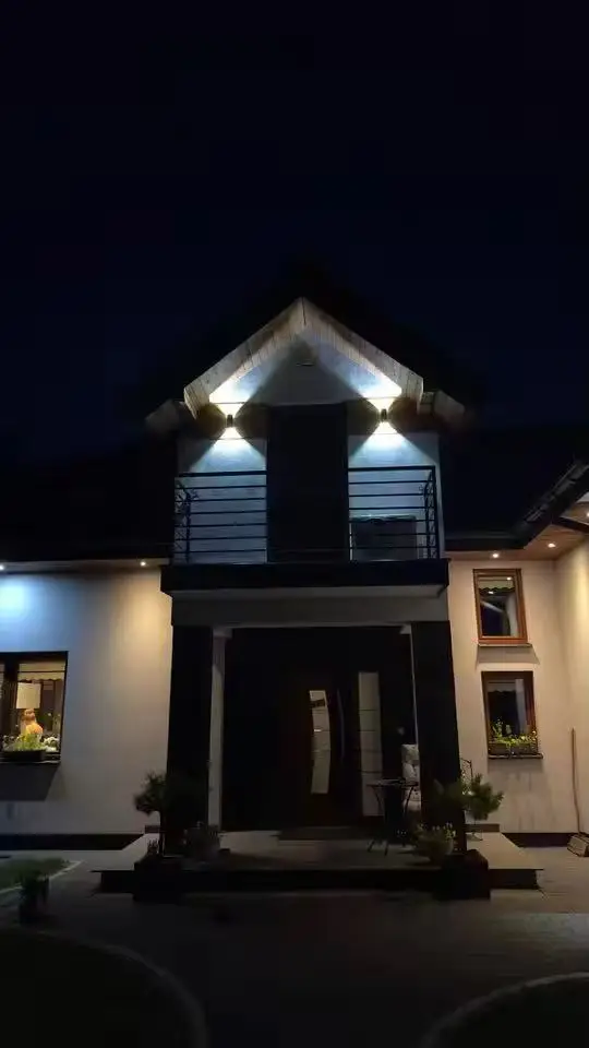 This wallight looks very modern and elegant once installed. The up-and-down lighting effect adds a nicearchitectural touch to the exterior wall and really enhances the overall appearance at night.the build quality feels solid, and the fixture works perfectly in rainy weather, so the waterproofing seemsreliable. The 3000k warm light is soft and comfortable, creating a welcoming atmosphere without beingtoo harsh.