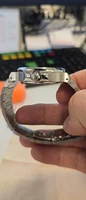 The best of the best, excellent finishes, threaded strap pins with a very good feel. The strap is a bit stiff and needs to be softened to fit perfectly around the forearm contour.