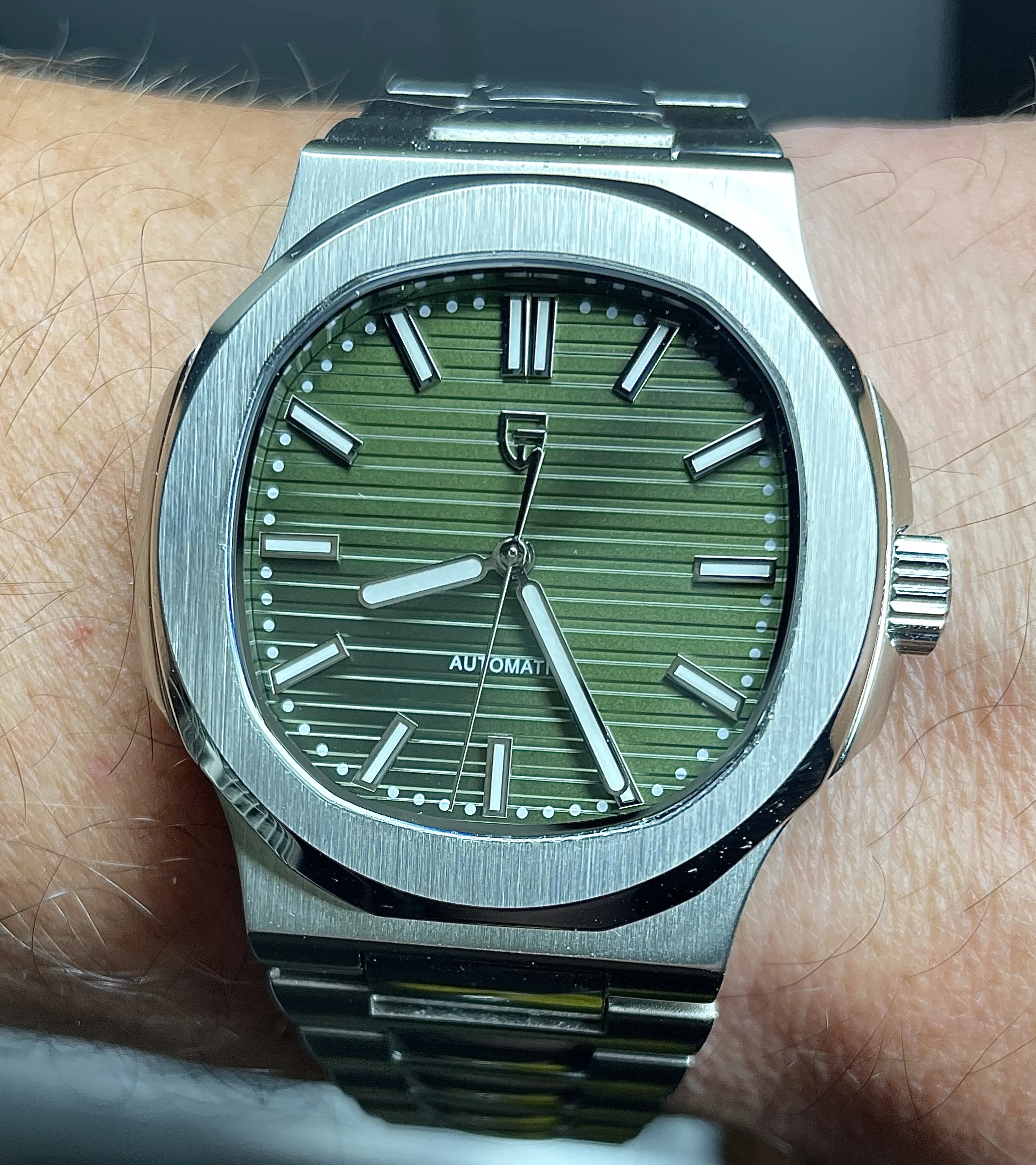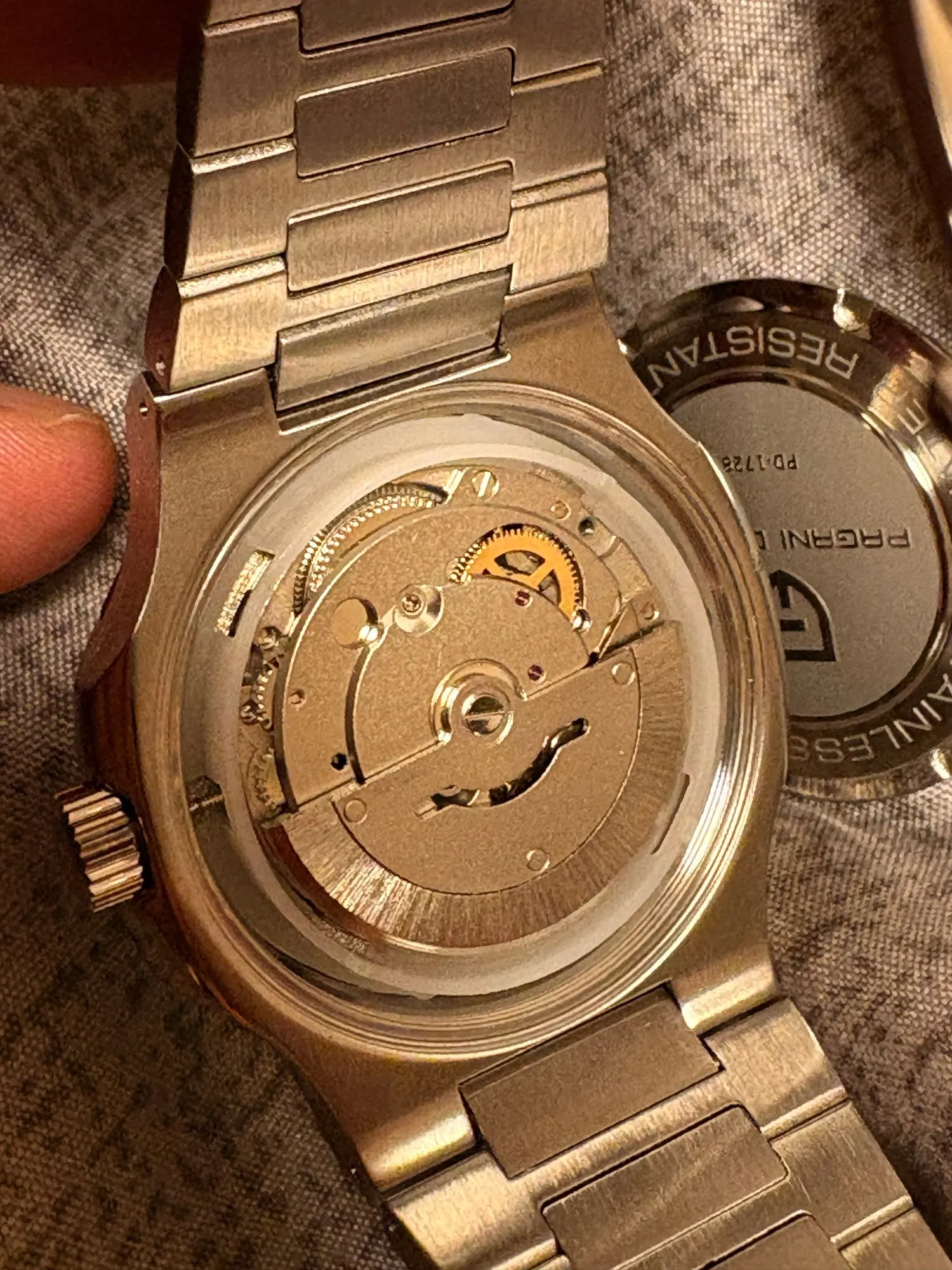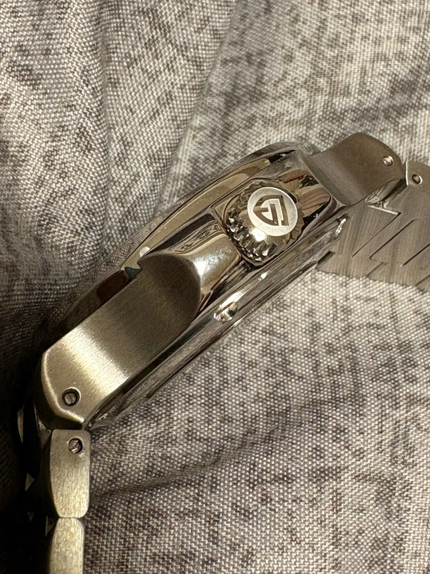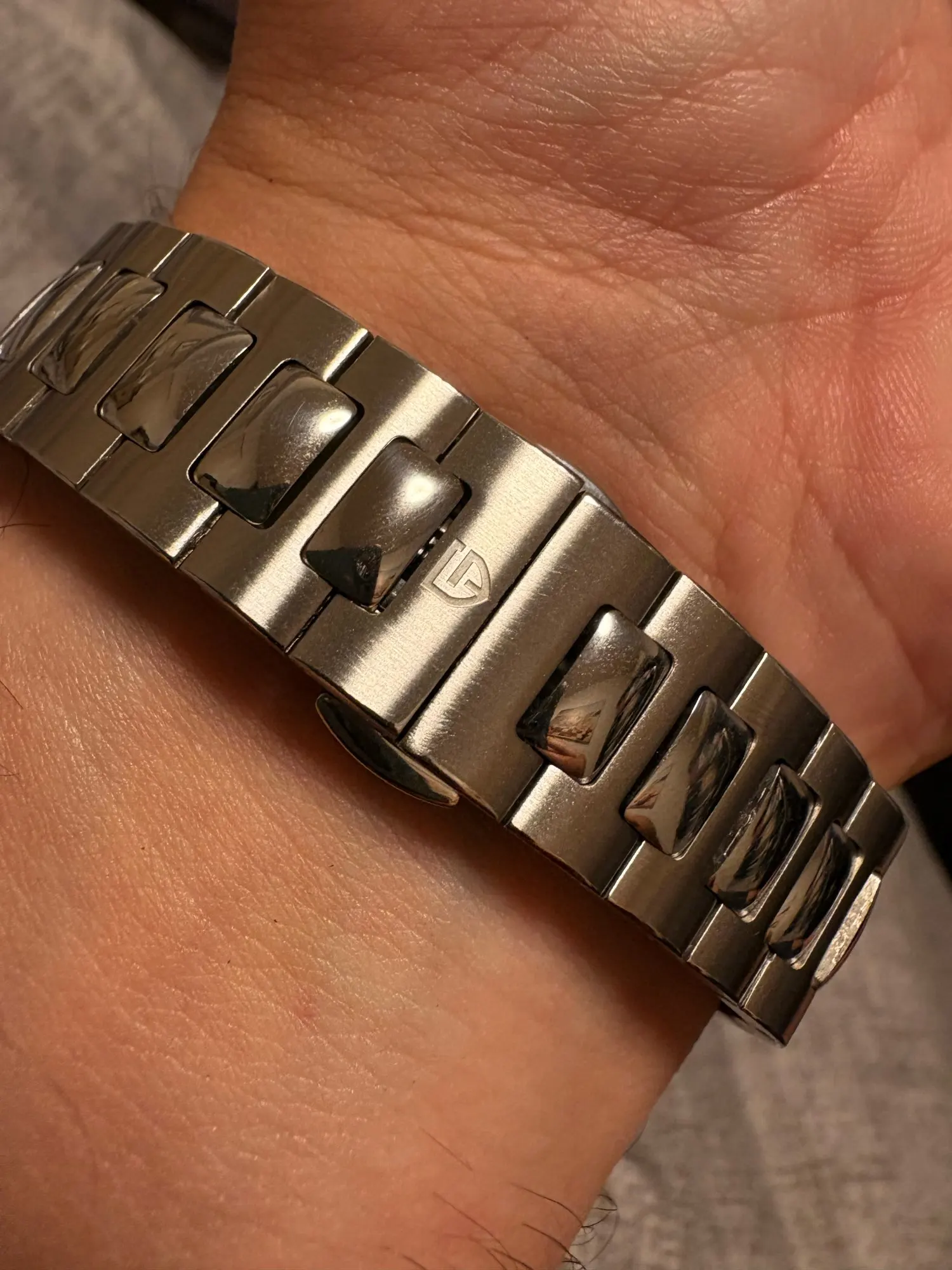 Solid watch. Watch band and material are of high quality with polished links. Automatic function is accurate and smooth. Only disappointment is the bezel and watch face are smaller that expected. It looks to be more of a 37mm or 38mm than the advertised 40mm. Overall it’s a great watch at a great price.