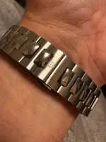 The white dial looks way more beautiful in real life; it offers a more casual look compared to the blue one. Small yet very masculine due to its bold design. It fits perfectly on smaller wrists (16.5 cm = 6.5 inches).