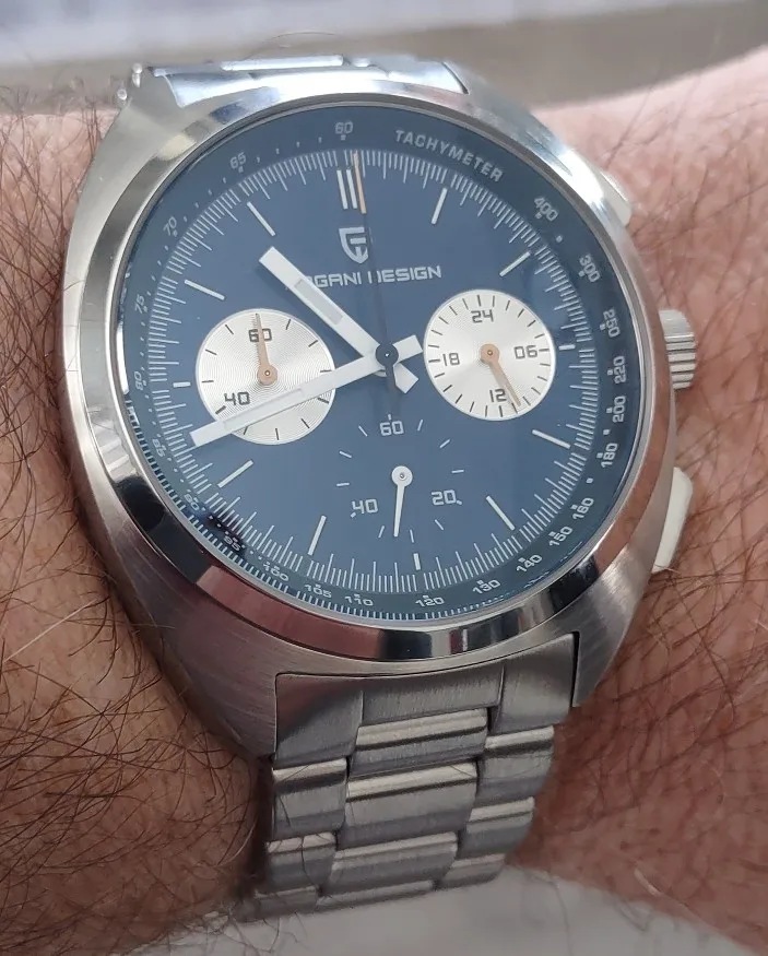I am always impressed with the high quality you receive from pagani design watches for the price. Great finish on the case and bracelet. Very dependable movement. Case is a nice in-between size so a good fit for just about anyone. I’m always worried about butterfly clasps because of the difficulty getting it sized correctly. But was thrilled with the inclusion of half links on this watch. This should always be done on watches with this style clasp.