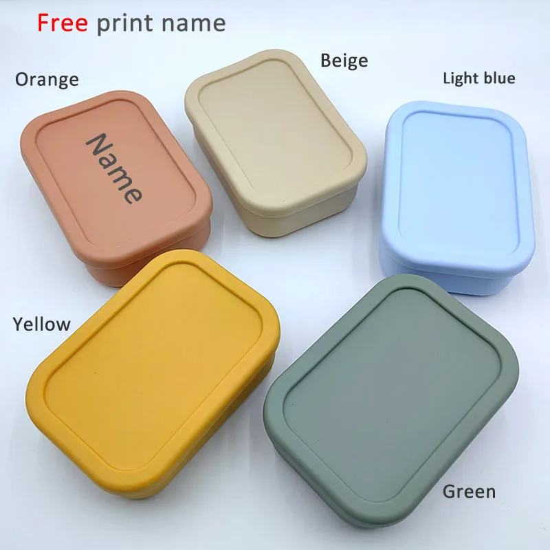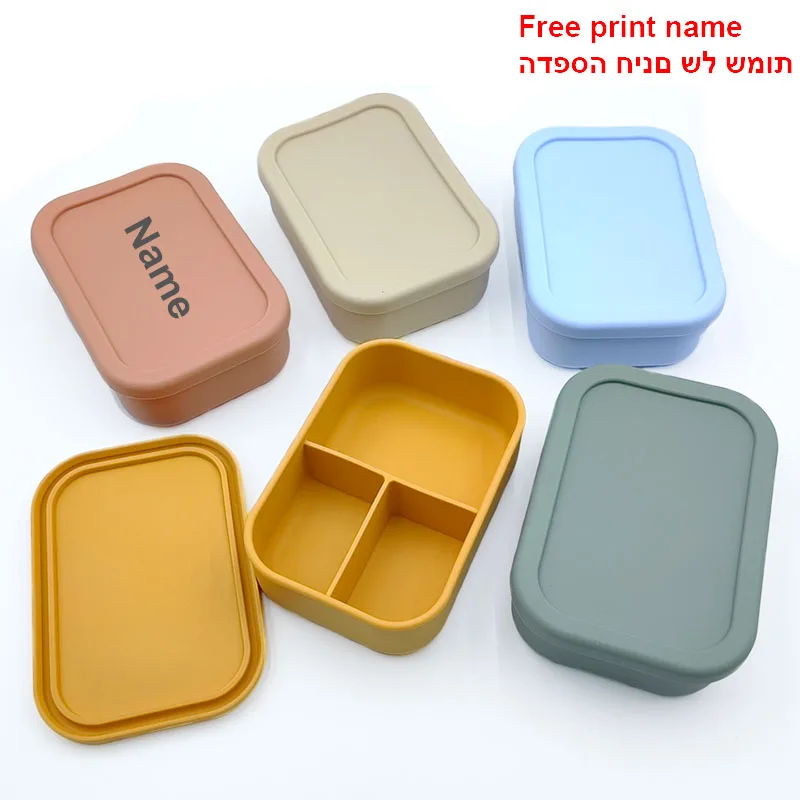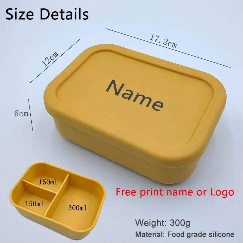 Personalized Name Bento Lunch Box Silicone 3-compartment lunch Box Baby Food Container Leakproof Portable Outdoor Picnic Lunch Box BPA free can be put into microwave dishwasher
