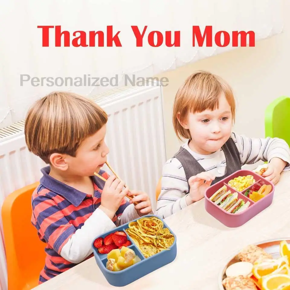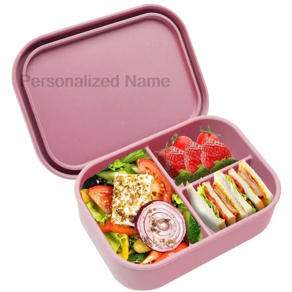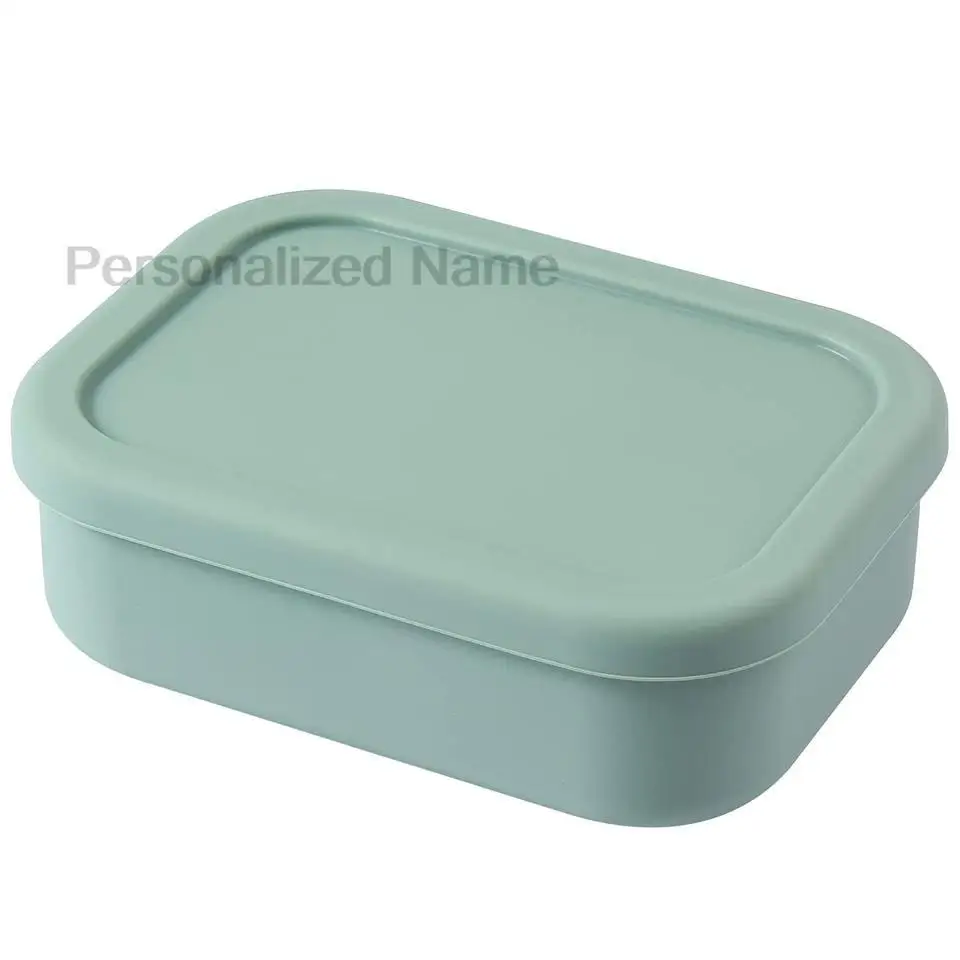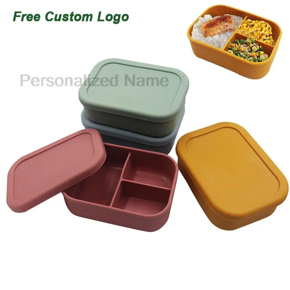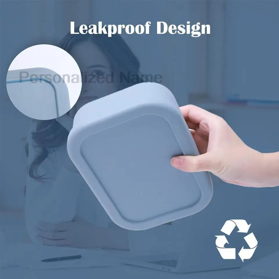 Personalized Name Silicone Water Bottle Lunch Box 3 Compartment Leakproof Bento Lunch Box For Kids Portable Camping Picnic Food Box BPA free can be put into microwave dishwasher