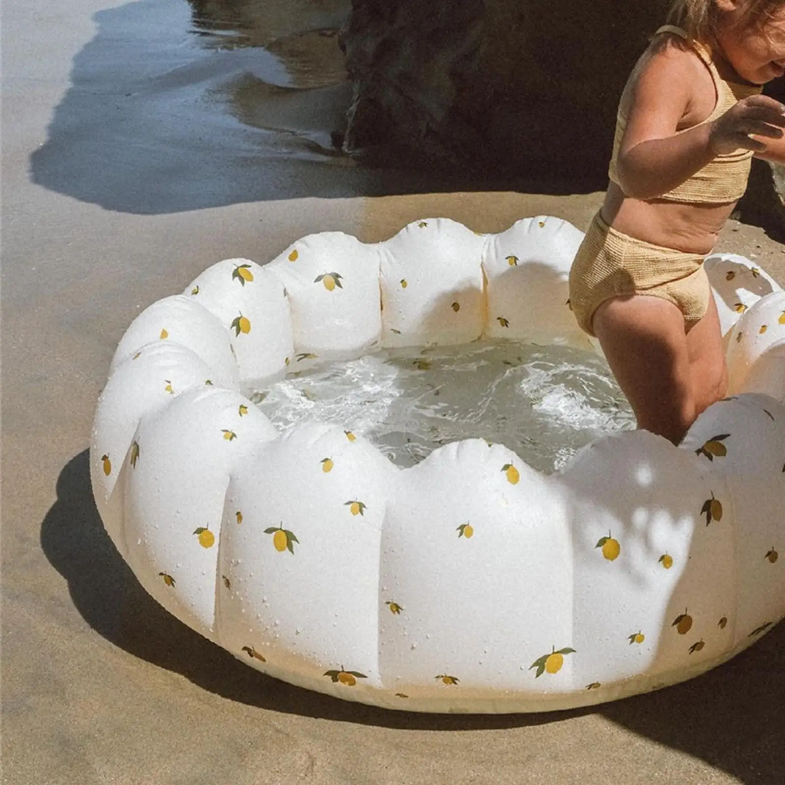 Round and Comfortable Pool: Petal inflatable pool has a soft foam bottom that is soft and completely for your little while playing and paddling in the pool