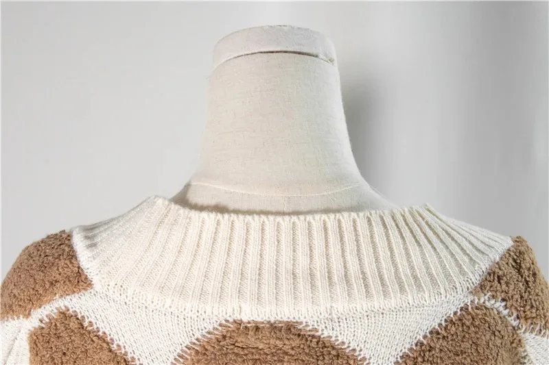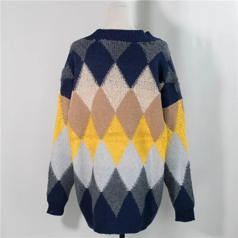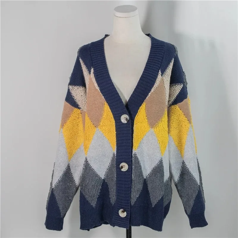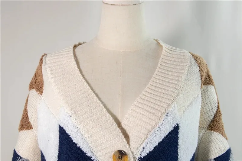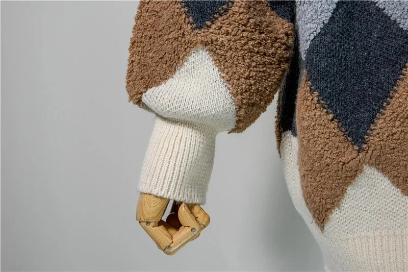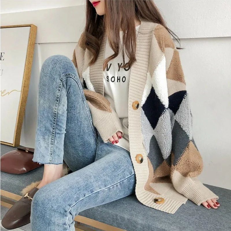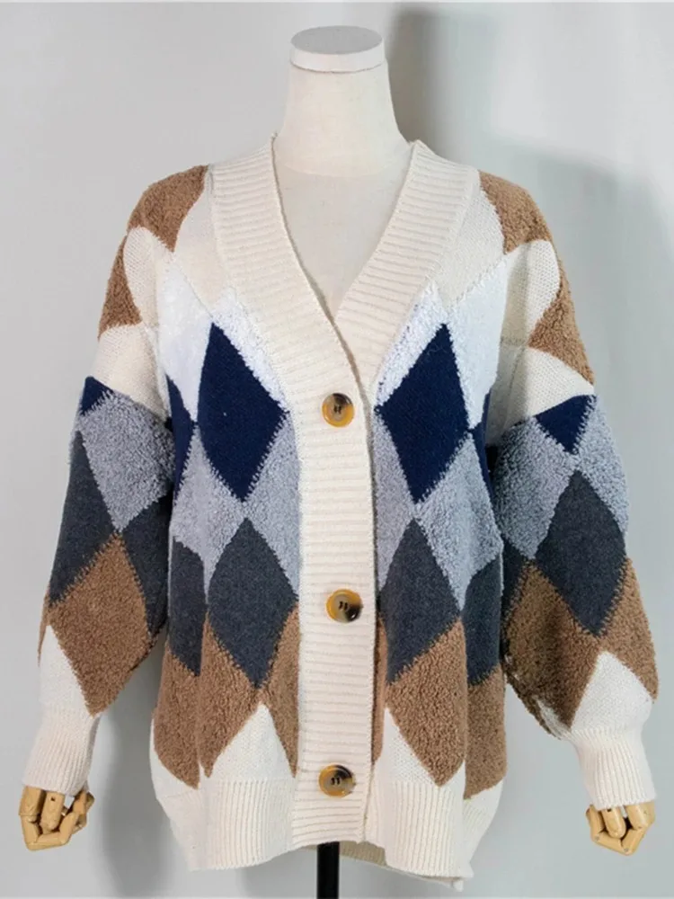 Plaid Chic Cardigans Button Puff Sleeve Checkered Oversized Women’s Sweaters Winter Spring Sweater Tops