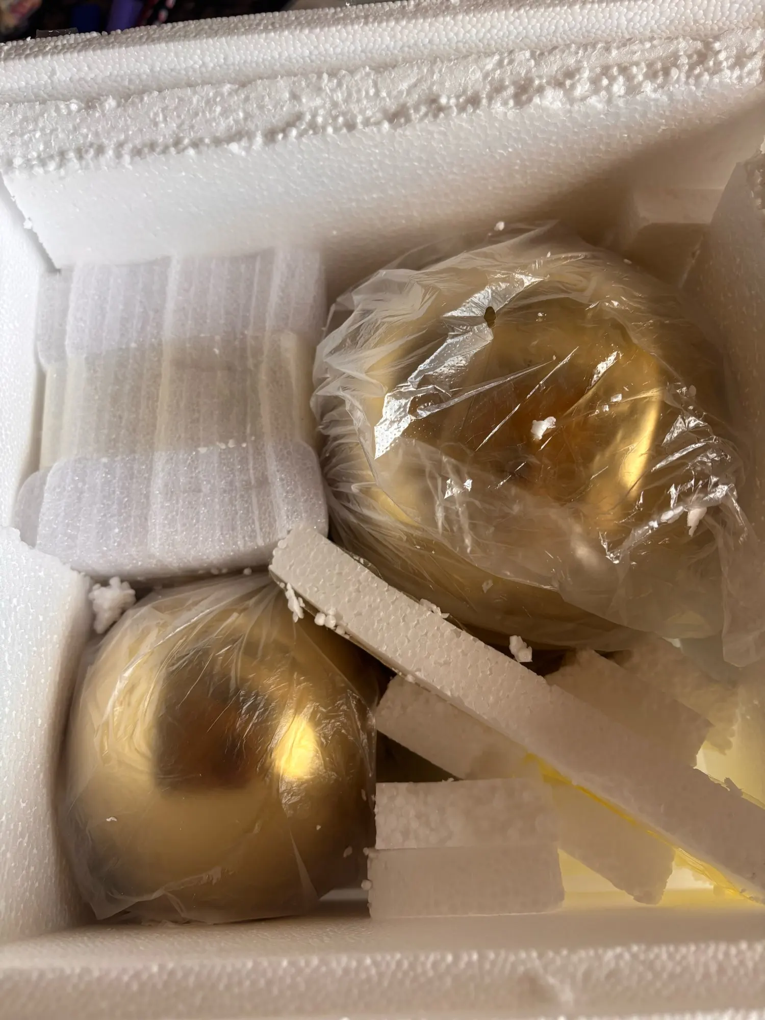 I ordered the three balls in 2 separate orders, the big ball arrived in a slightly different color than the medium and small balls