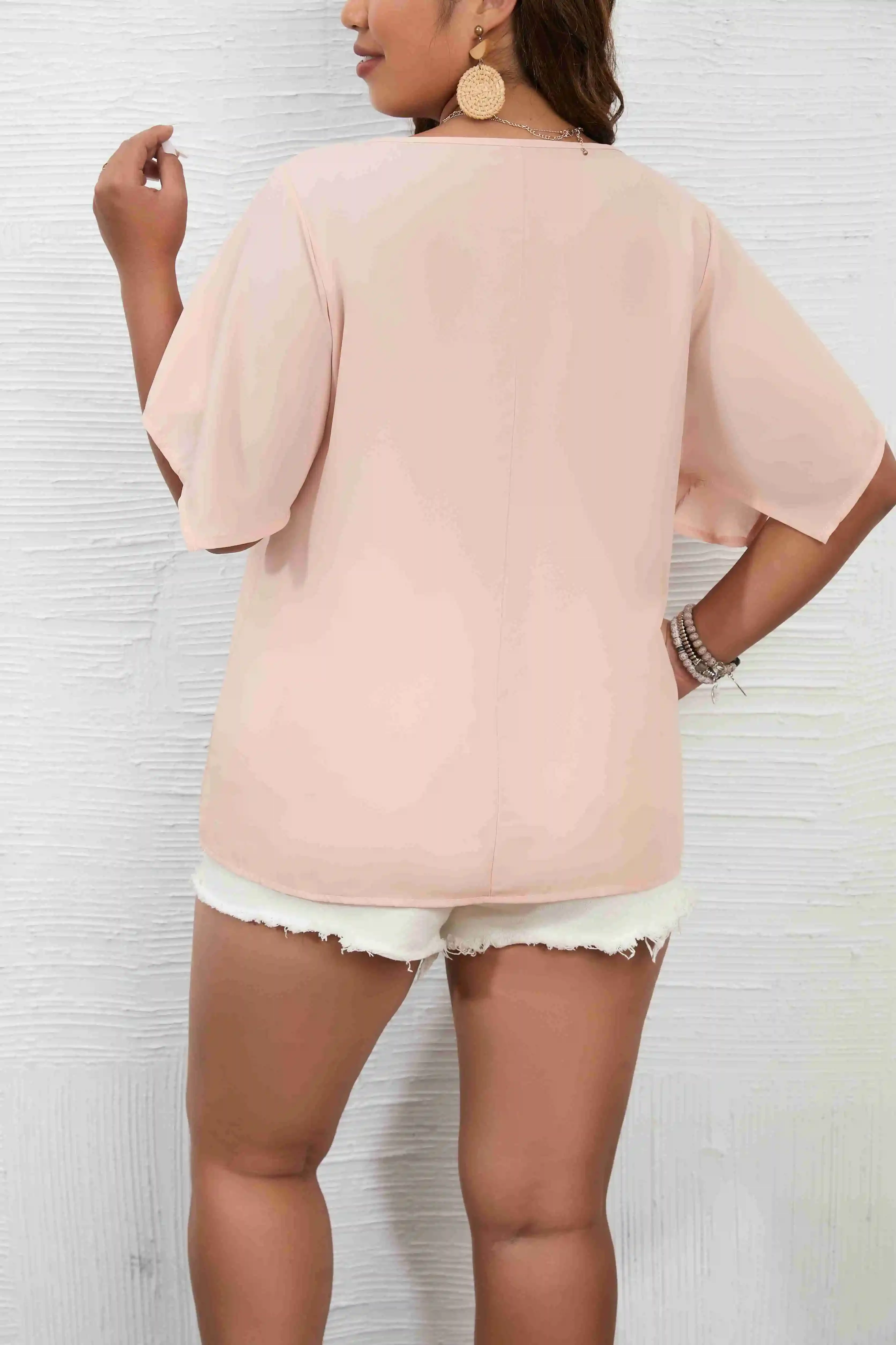 1 review for Plus Size 1XL-5XL Women’s Solid Color Short Sleeve BlouseV Neck Bell Sleeve Blouse Casual Pullovers Shirt Top