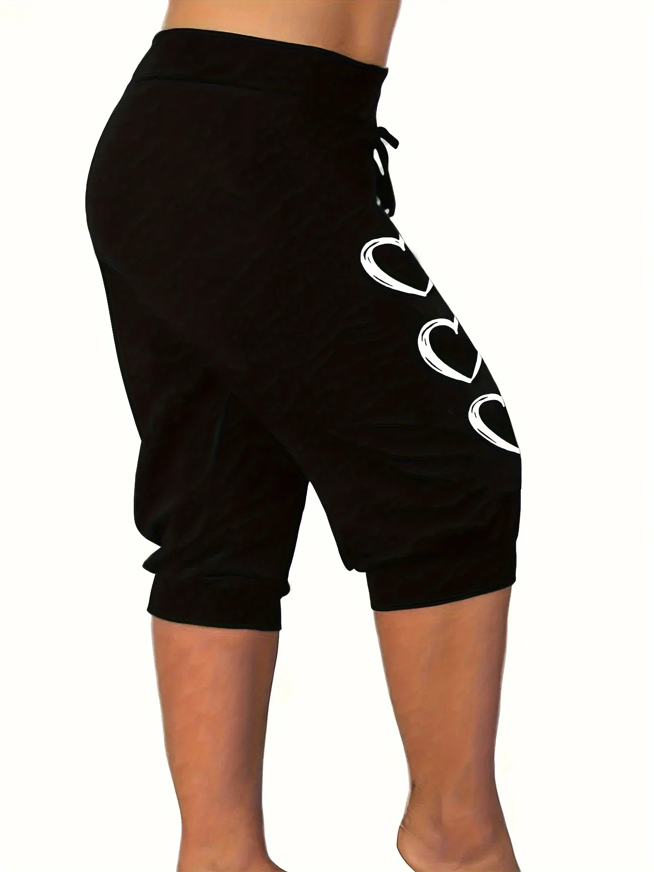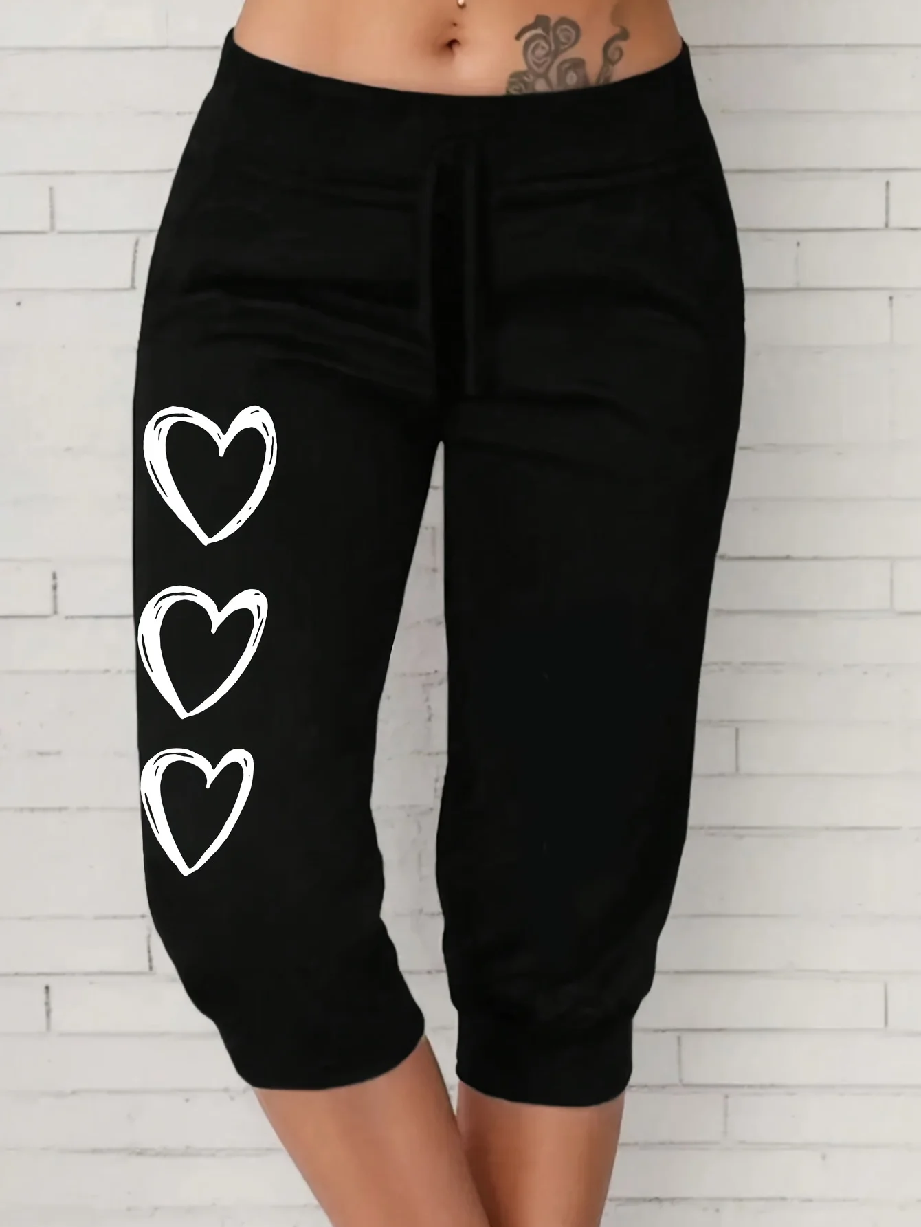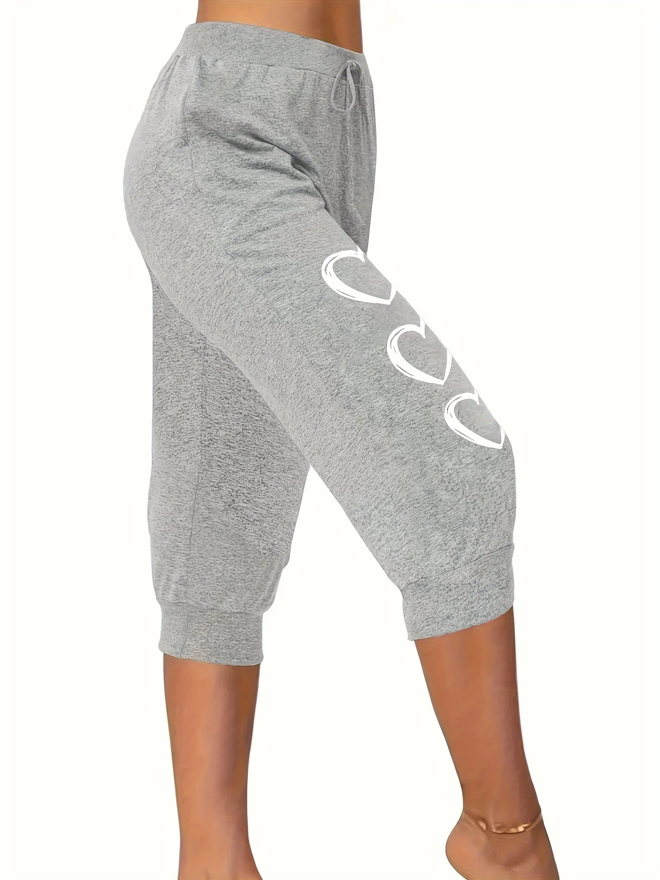 Plus-size love print Capri pants casual elastic waist pants suitable for spring and summer women’s plus-size clothing