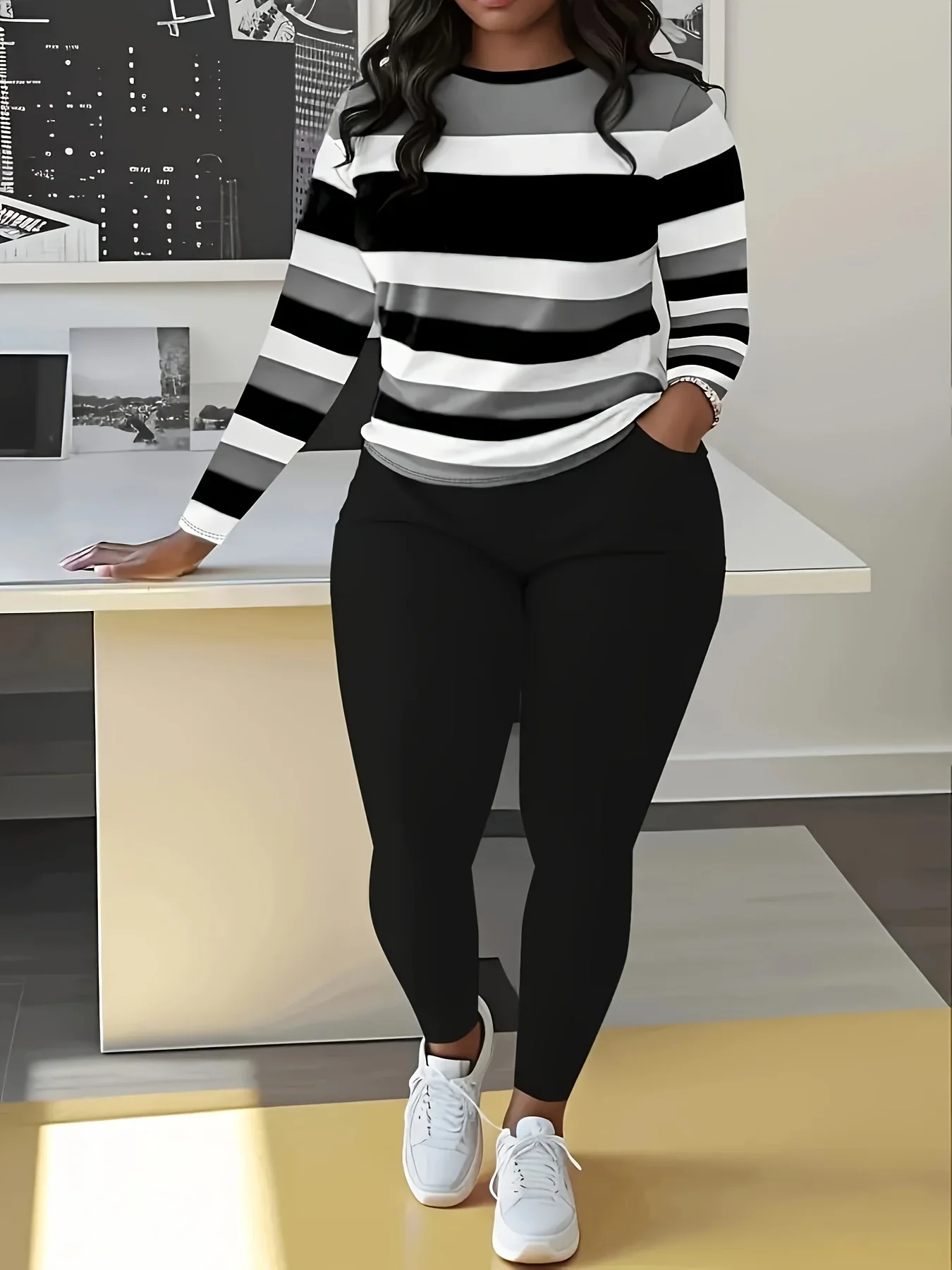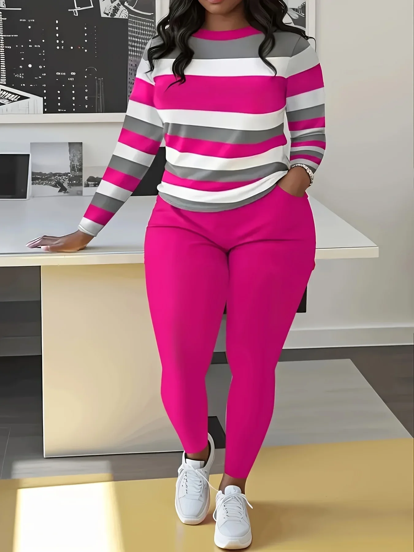 A*****Plus size two pieces sets colorblock casual women received. recommended
