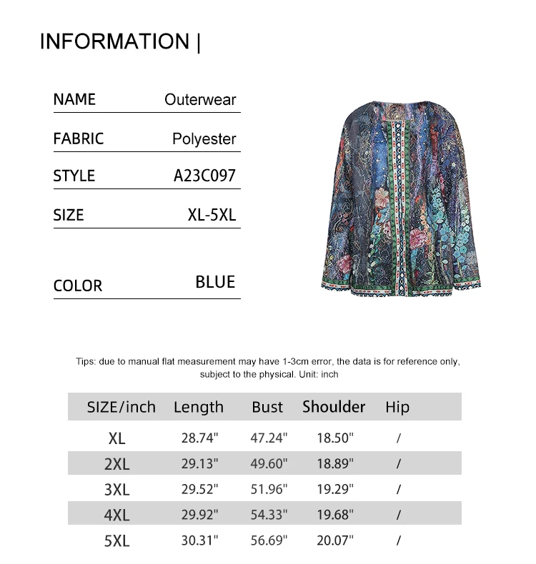Plus Size Women’s 2023 fashion winter jacket retro style loose print collarless women’s jacket XL- 5XL