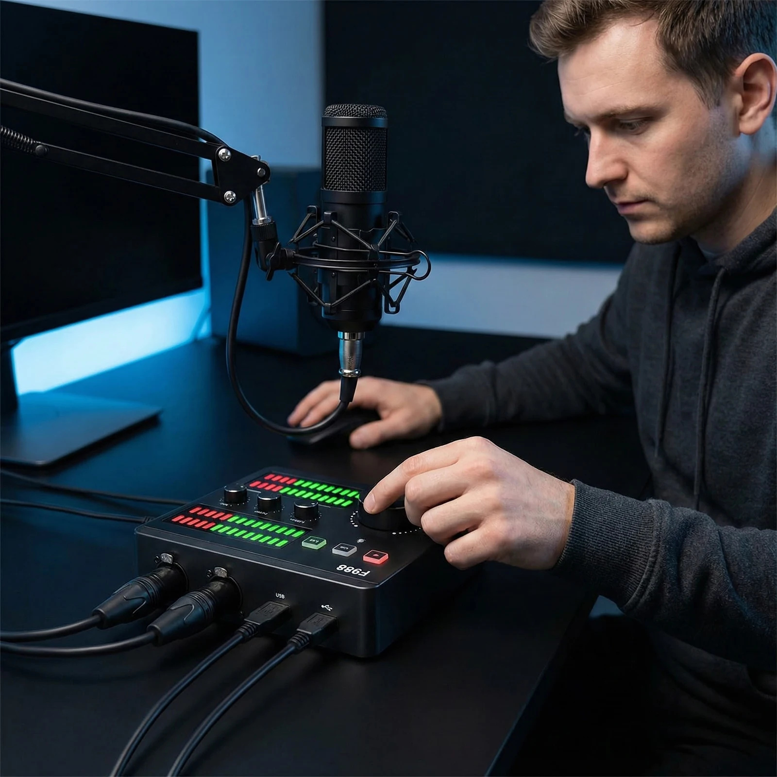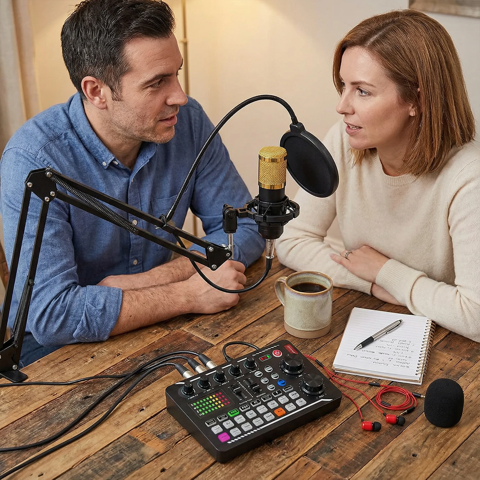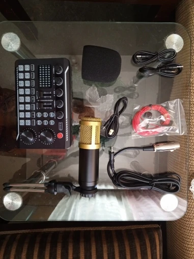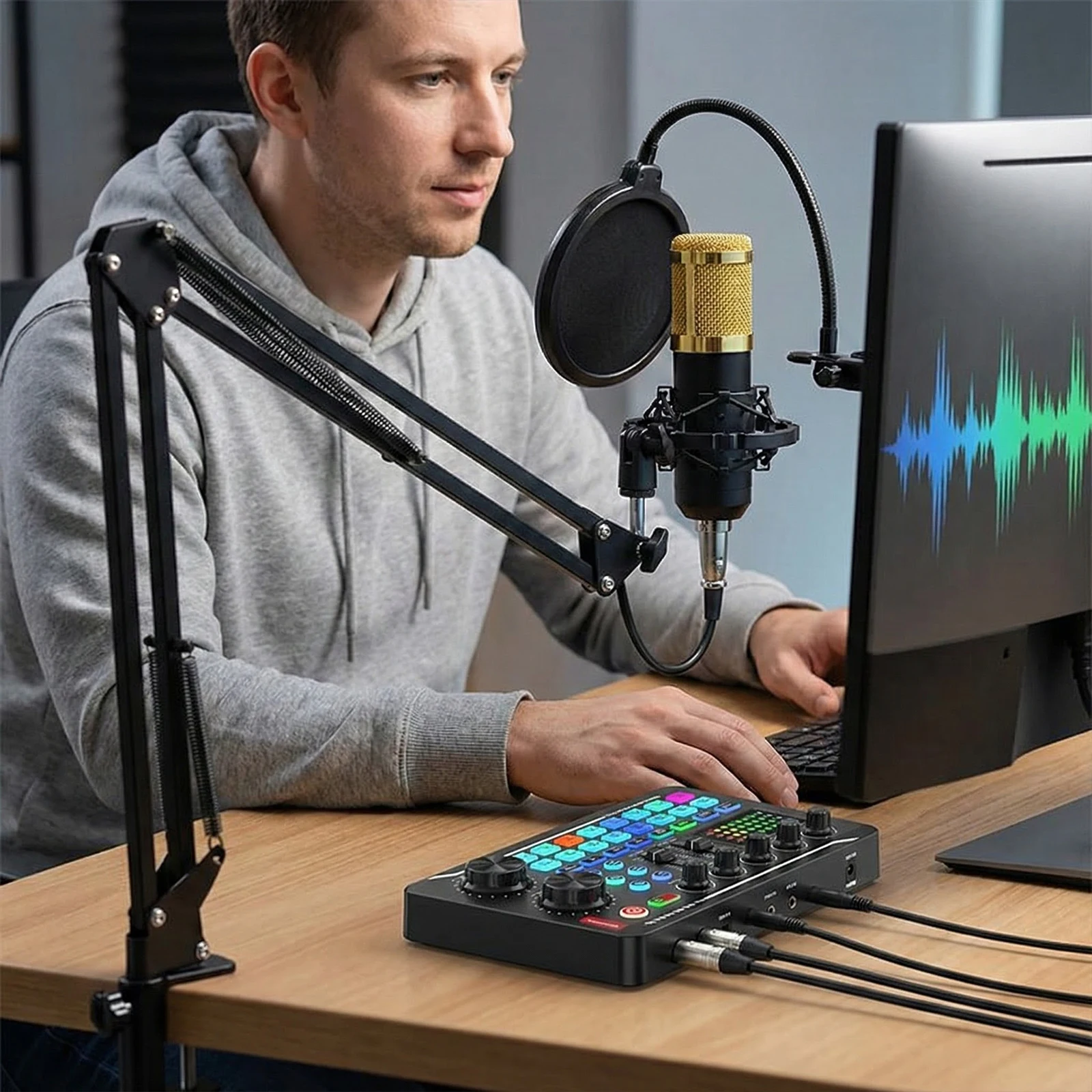 15 reviews for Podcast Microphone Suit with Sound Card Audio Mixer Noise Cancelling DJ Mixer Voice Changer Type C Studio Condenser Microphones
