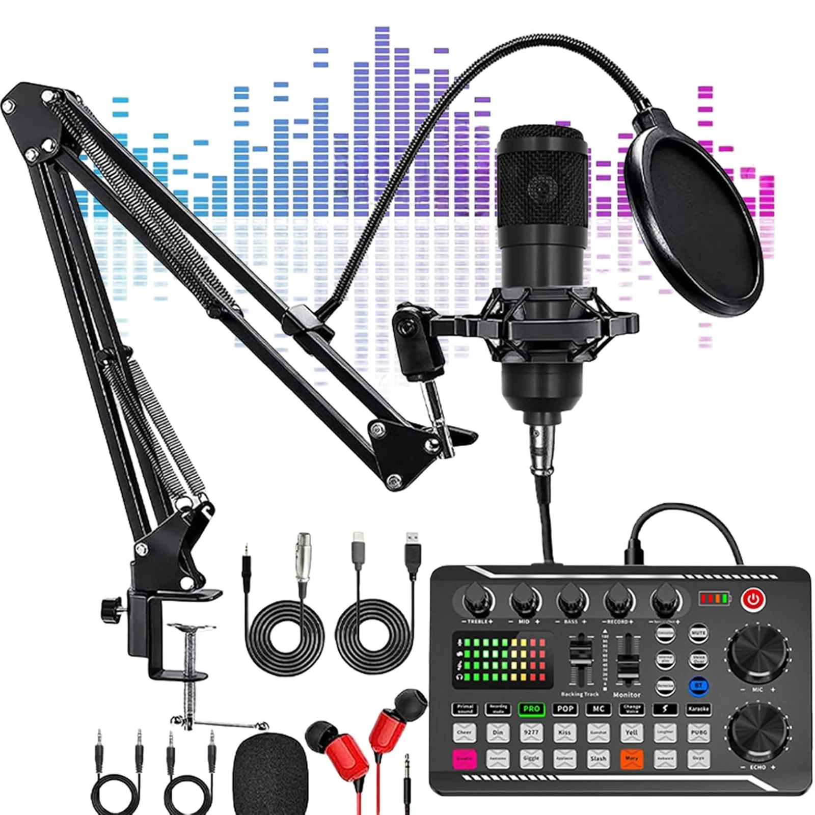 Podcast Microphone Suit with Sound Card Audio Mixer Noise Cancelling DJ Mixer Voice Changer Type C Studio Condenser Microphones
