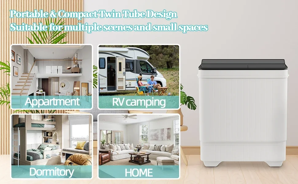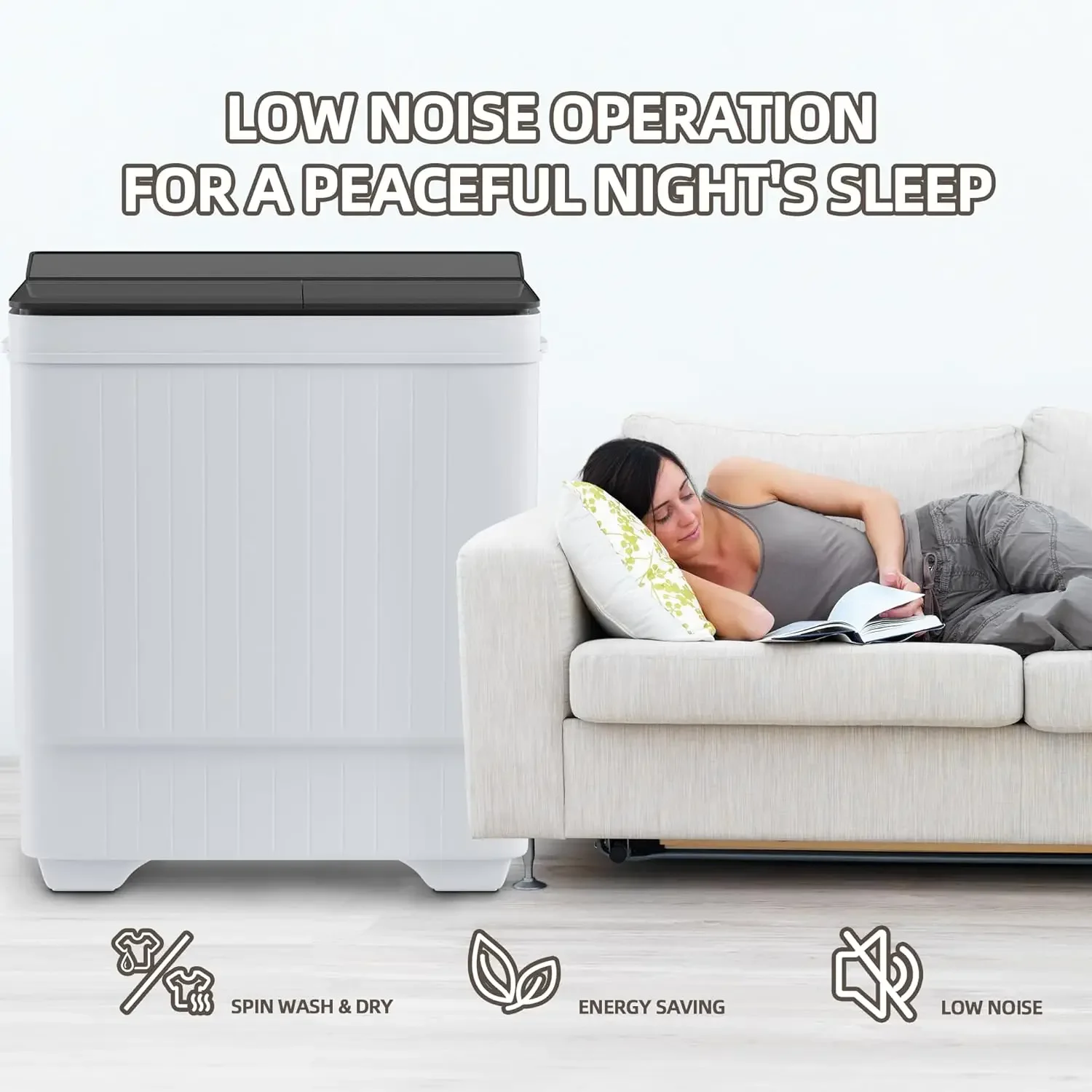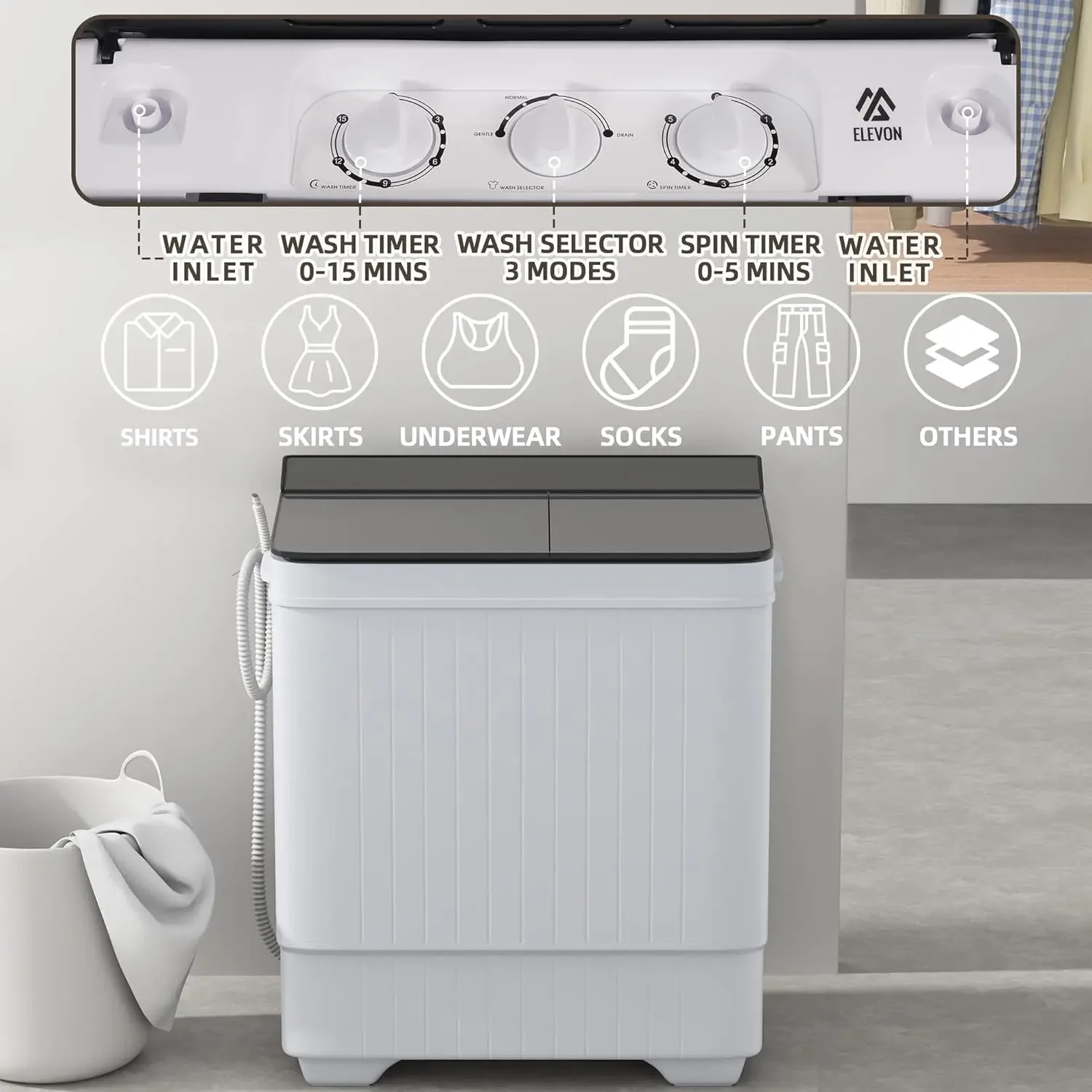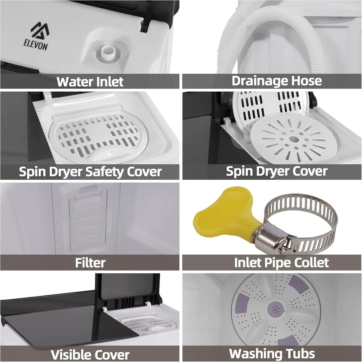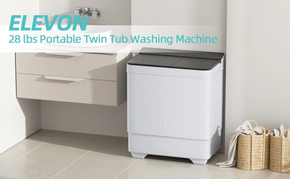 Elevon Portable Washing machine, 28lbs Mini Compact Laundry Washing Machine, Twin Tub 18lbs Washer & 10lbs Spinner Combo, Clothes Washer Machine with Drain Pump for Apartment, Dormitory and RVs