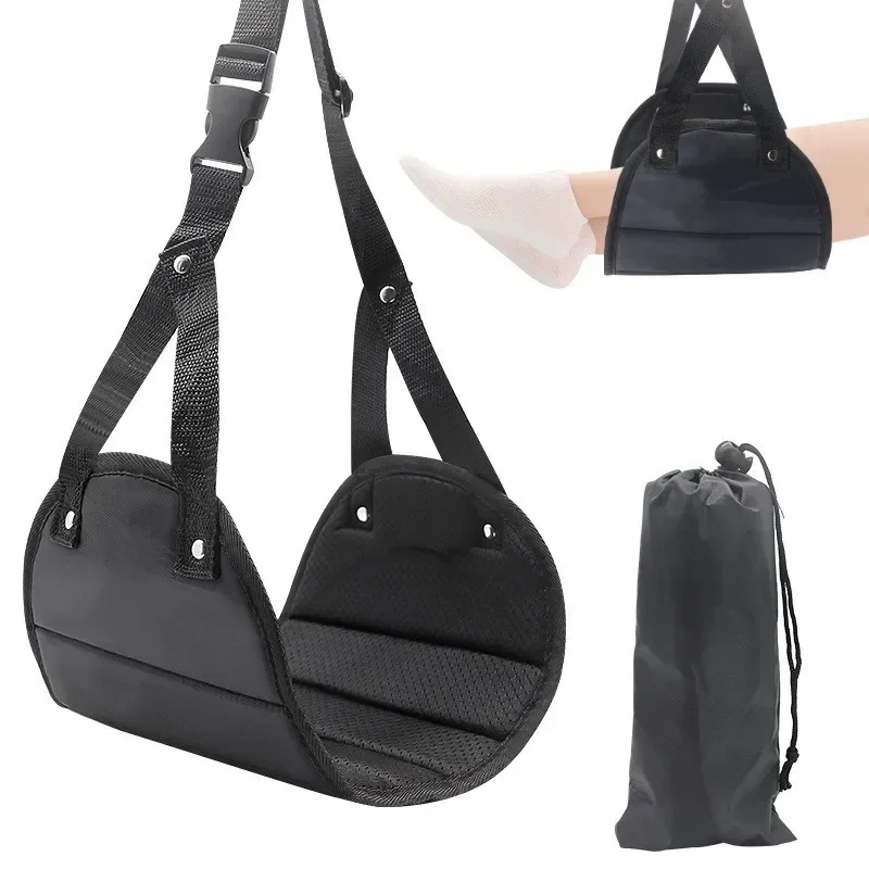 Portable Adjustable Leg Hammock with Comfortable Foot Rest for Airplane Office and Car Travel Support and Relaxation