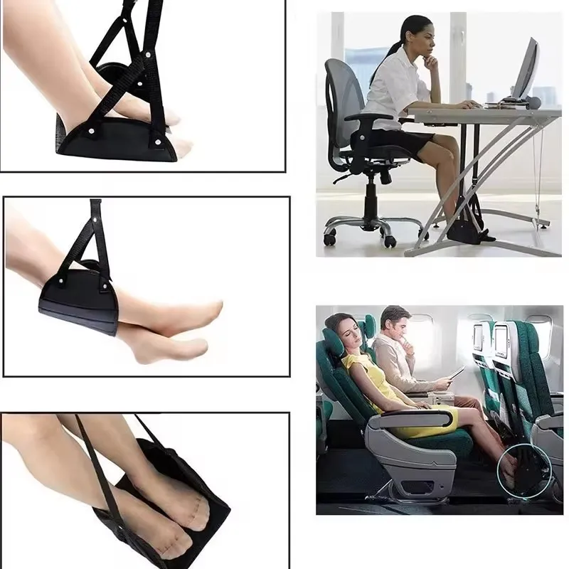 Portable Adjustable Leg Hammock with Comfortable Foot Rest for Airplane Office and Car Travel Support and Relaxation
