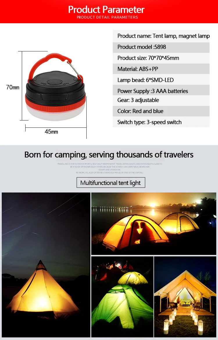 【Lightweight & Portable】The little camping light–compact, lightweight, space save and easy to carry, perfect travel size. All-purpose foldable hook, can be hang it on tents or tree, with magnetic for metal surfaces, free your hands. The extremely lightweight design also fit for young child, a great gift for your loved ones.