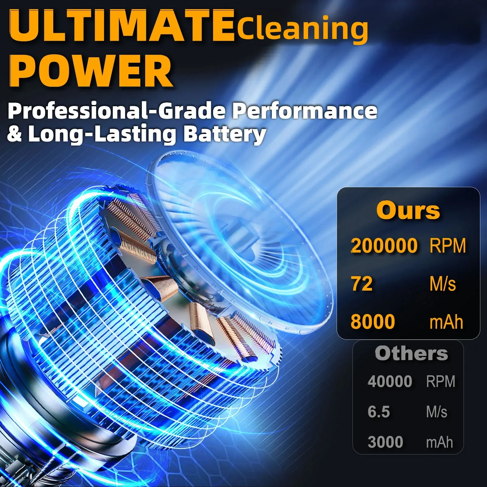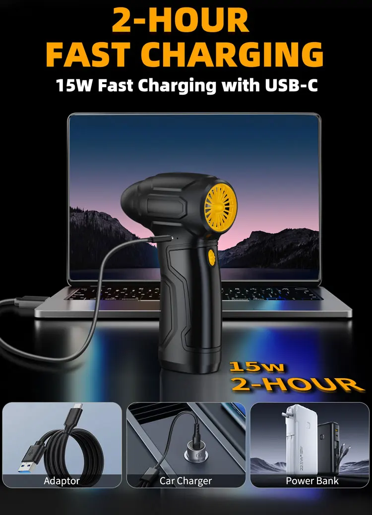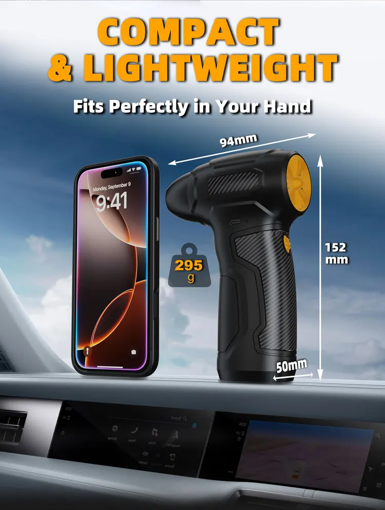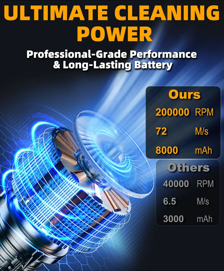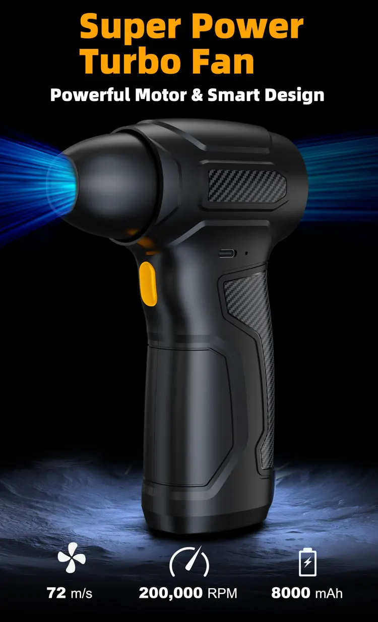 Unmatched Performance: Equipped with an ultra-powerful 200,000 RPM motor, providing a wind speed of 72 m/s for efficient cleaning and cooling.
