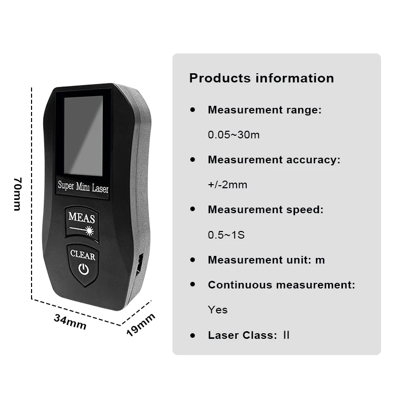 Excellent laser meter, which calculates in meters. Too small to carry it as a keychain ñ, the battery lasts vast.
