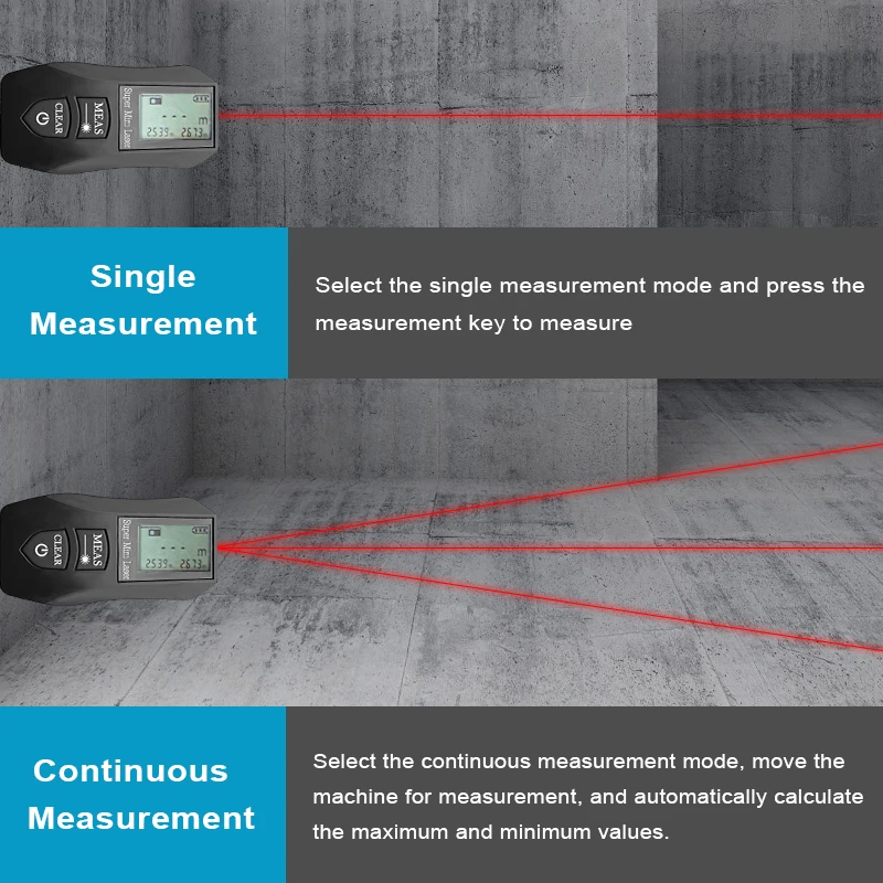 Accuracy should not exceed 30 meters, but the actual measurement distance is up to 40 meters. High accuracy, tested and very complained, measuring the Start distance from the end of the machine only, easy to use, if press and hold 3 seconds, it will open to measure the distance all the time.
