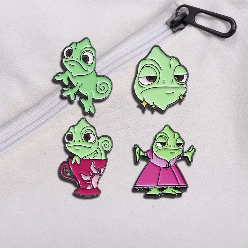 Princess Chameleon Lizard Enamel Pins Funny Cartoon Fairy Tale Role Brooch Backpack Lapel Badges Animal Jewelry Gift for Friends