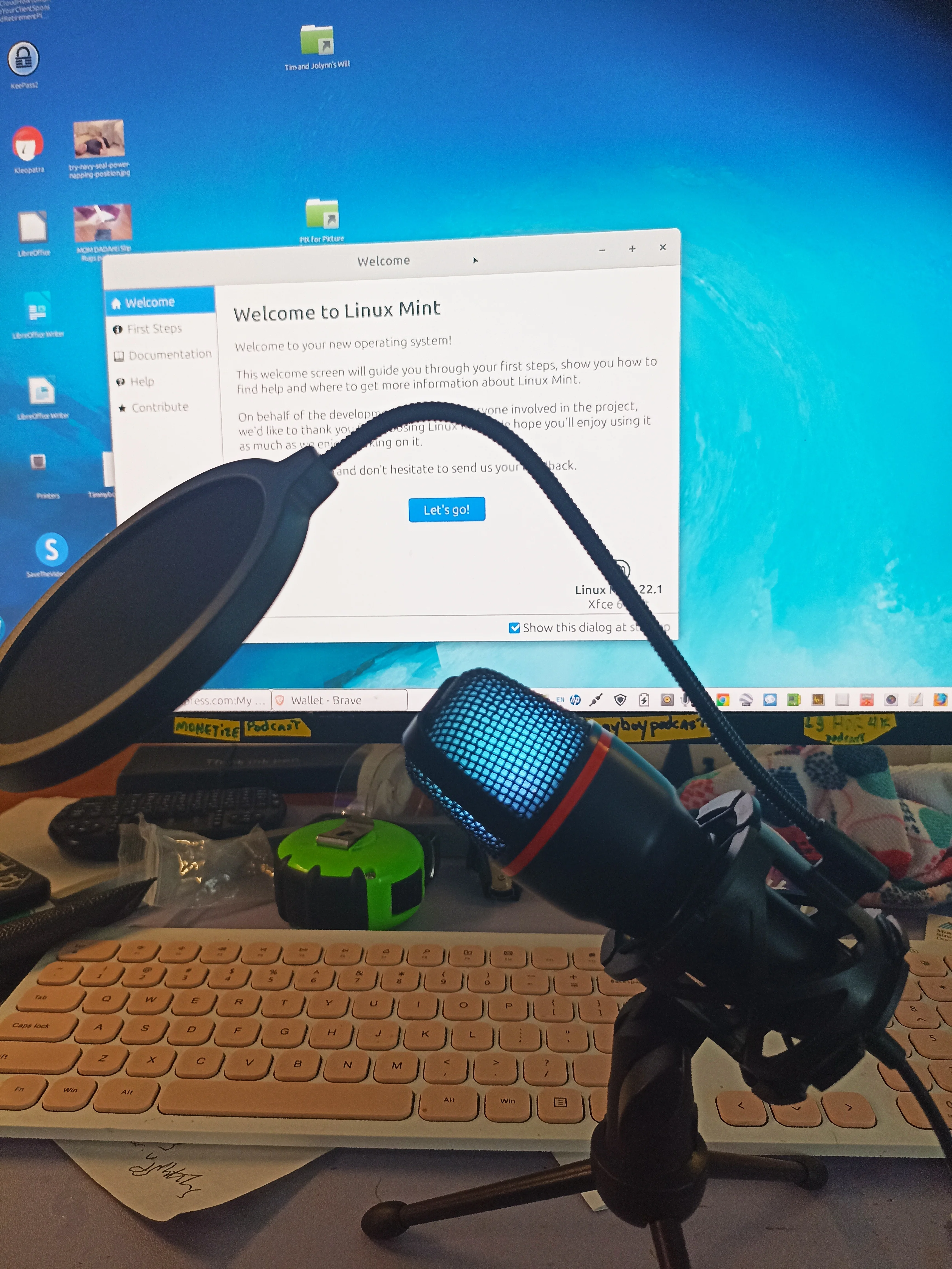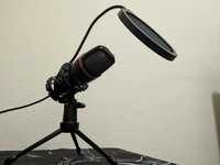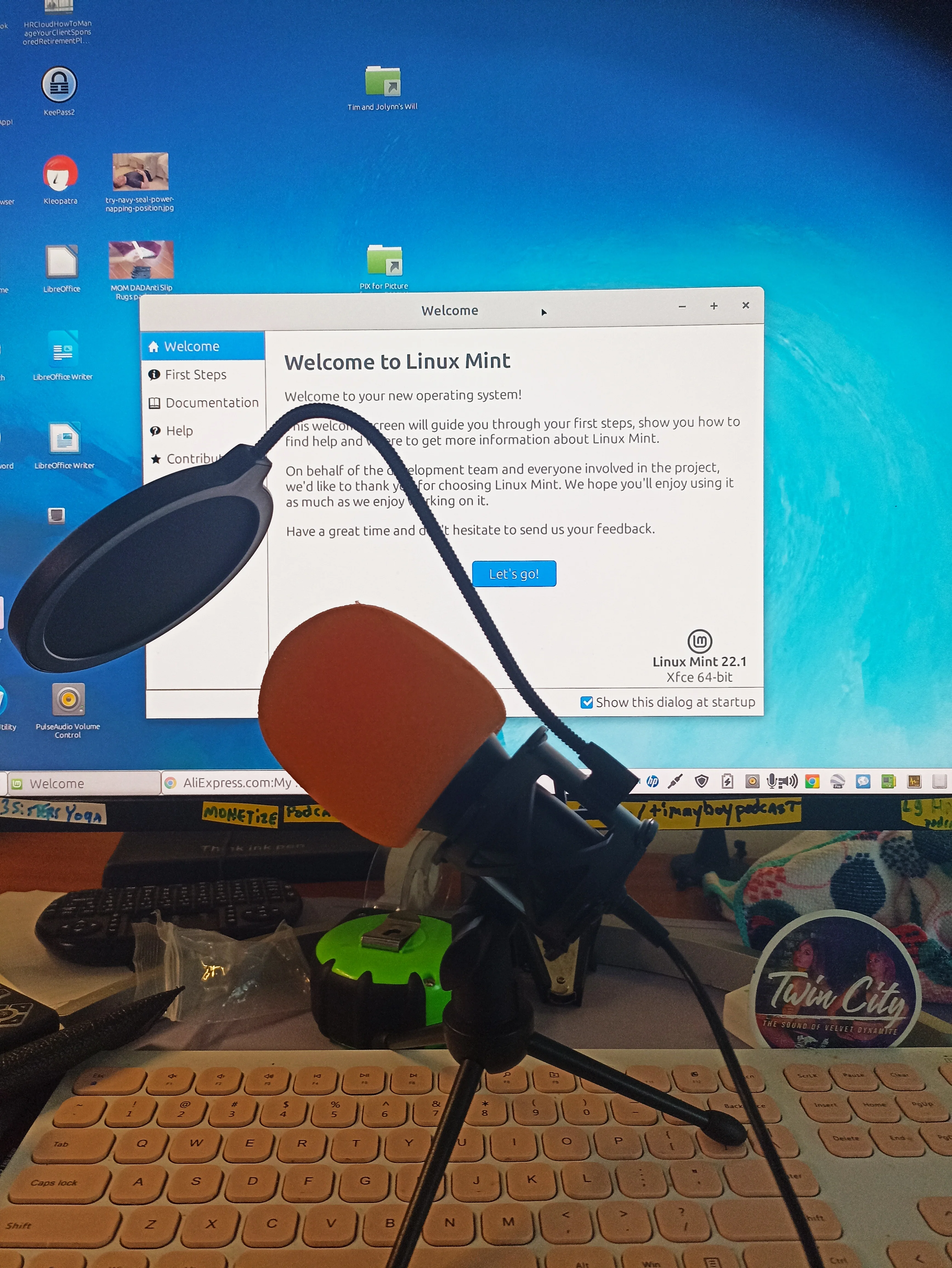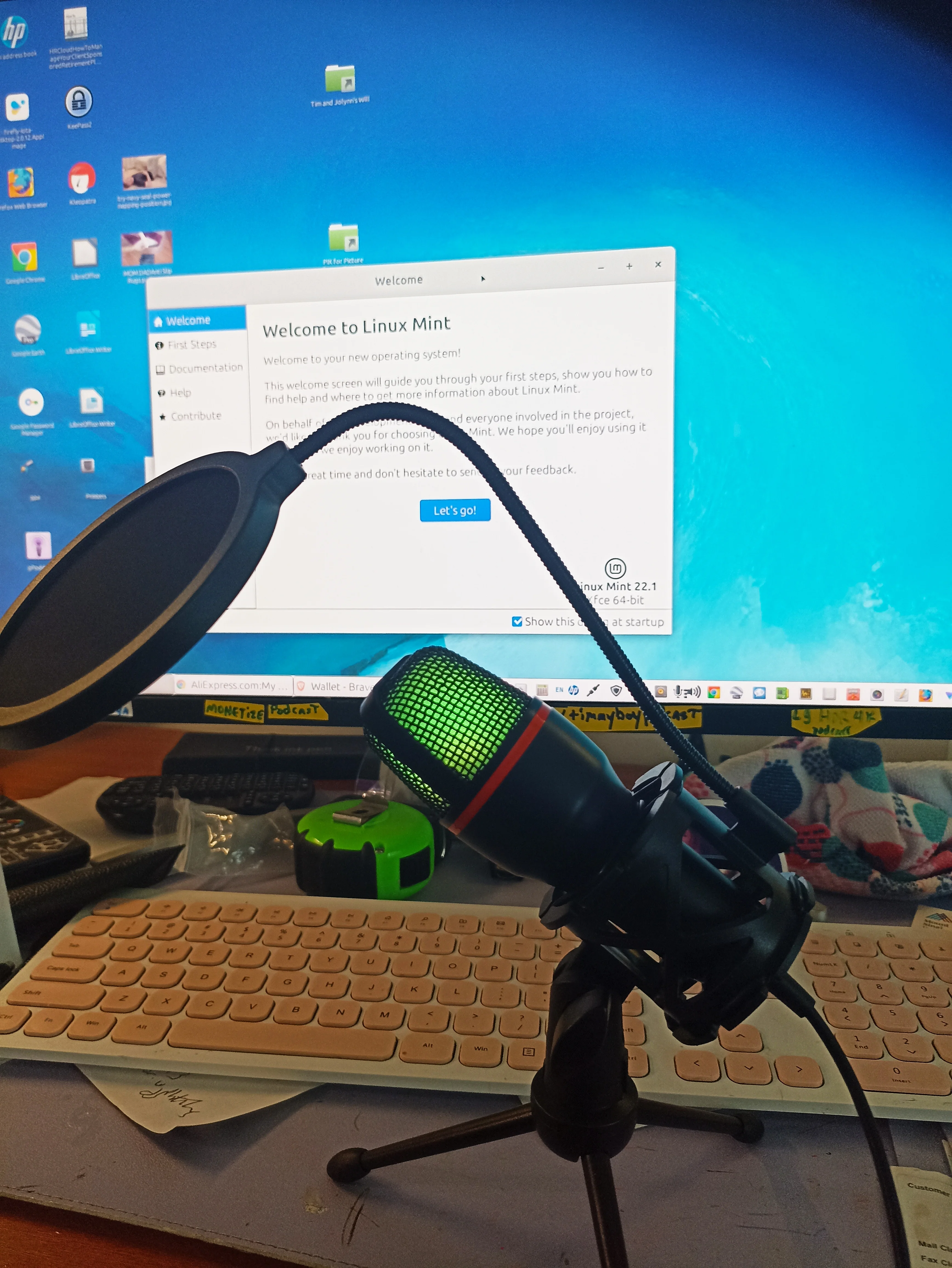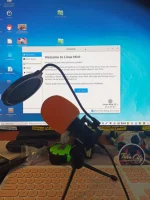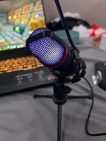 Amazing microphone!!!!! I am so happy , it works on linux mint o/s ( see picture background ) as well as windows ! !! The orange cover is mine but the pictures with the blue light and green light are awesome ! !!! I bought a $100 microphone and this one is far better ! !!!! !