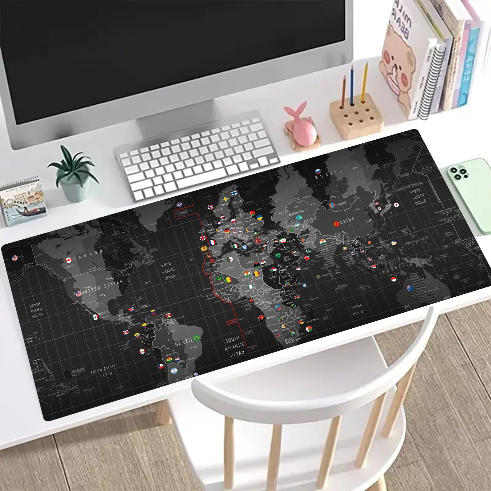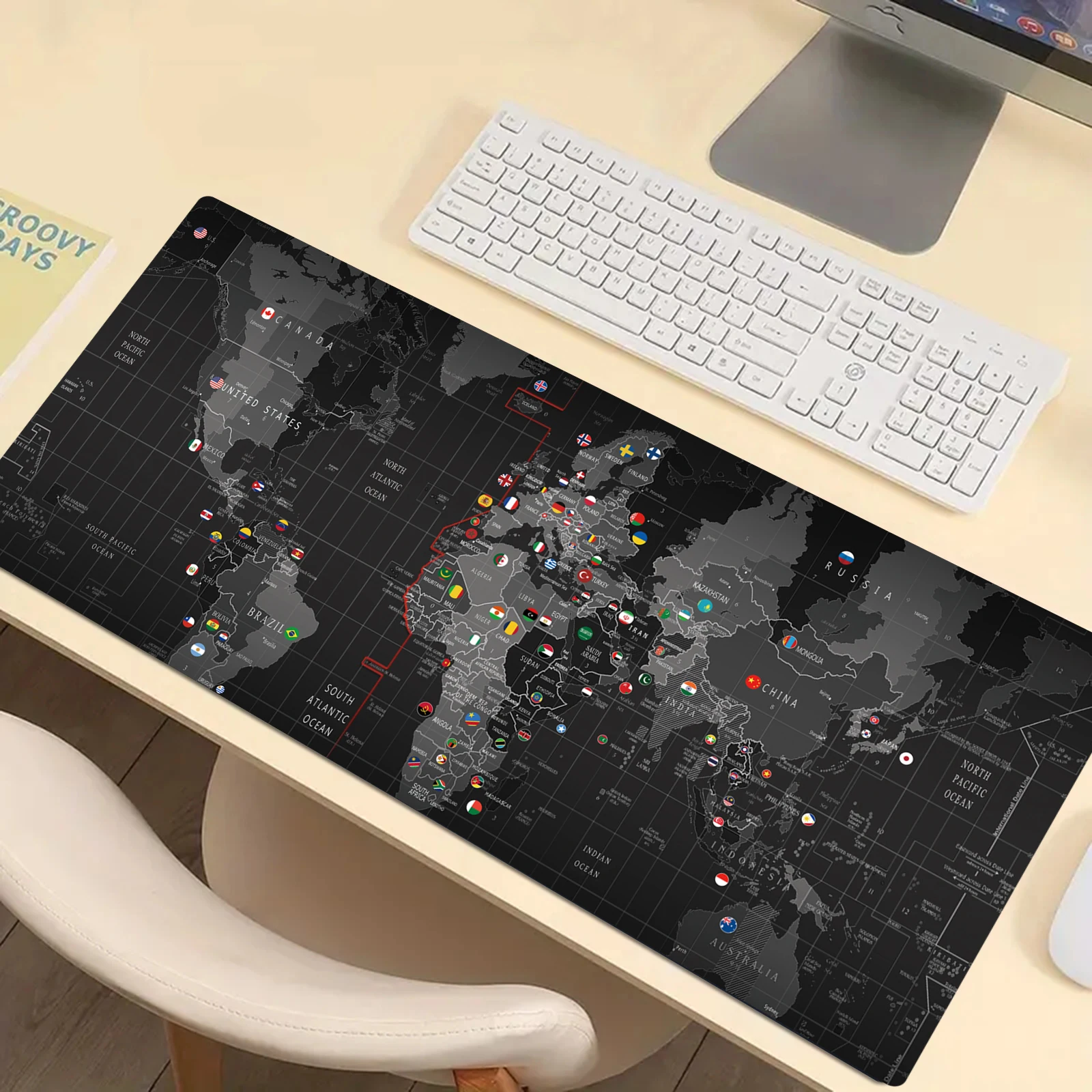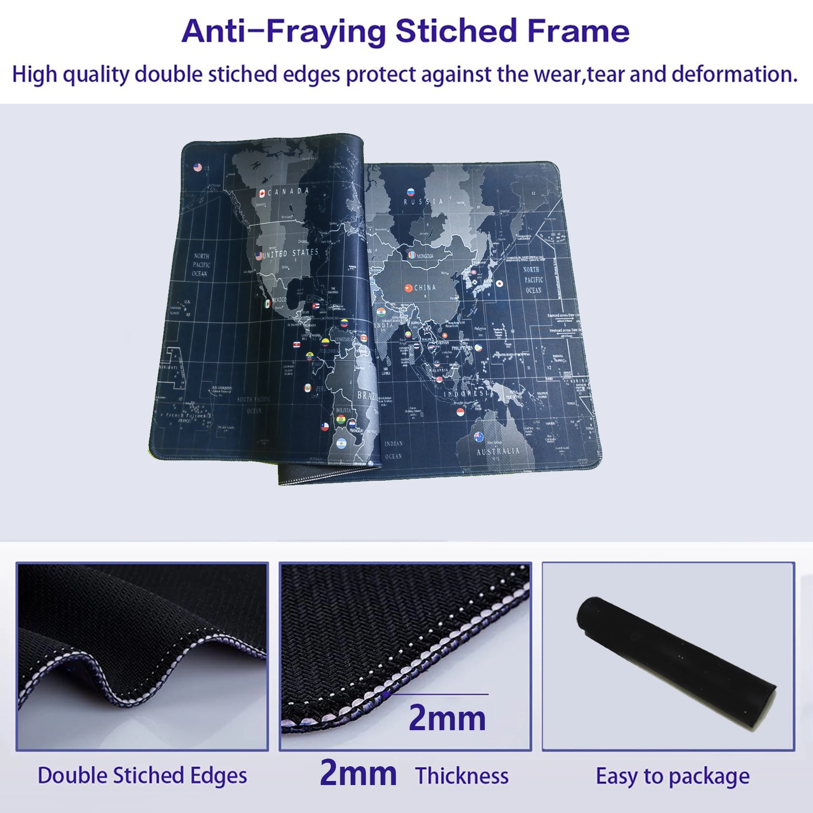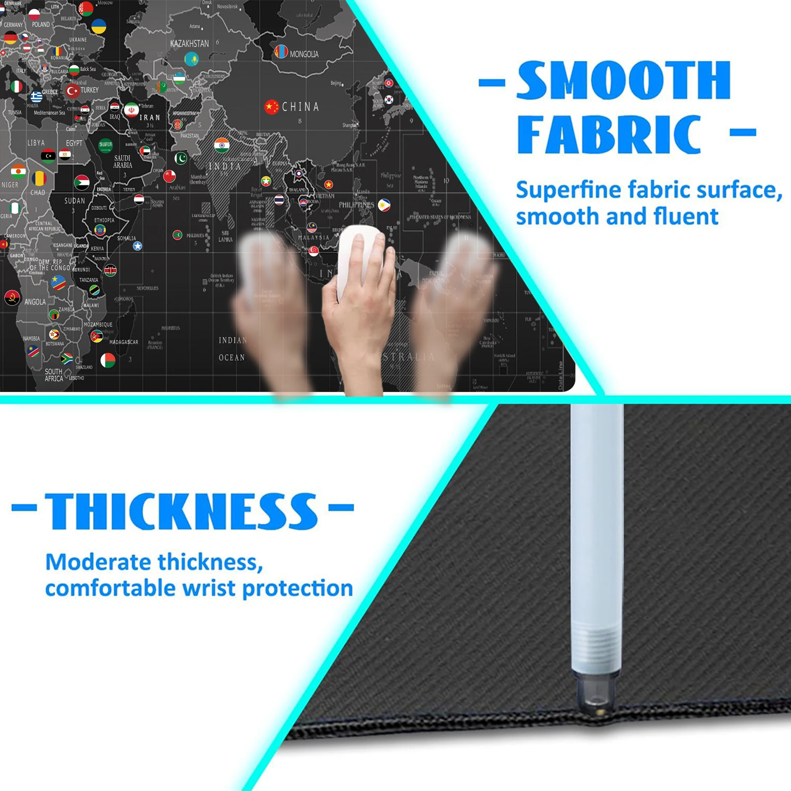 In the small letters it is not understood what it says, but it is of good material and fulfills its mission both to locate the countries as well as for the mouse and keyboard. Arrived quickly in Chile