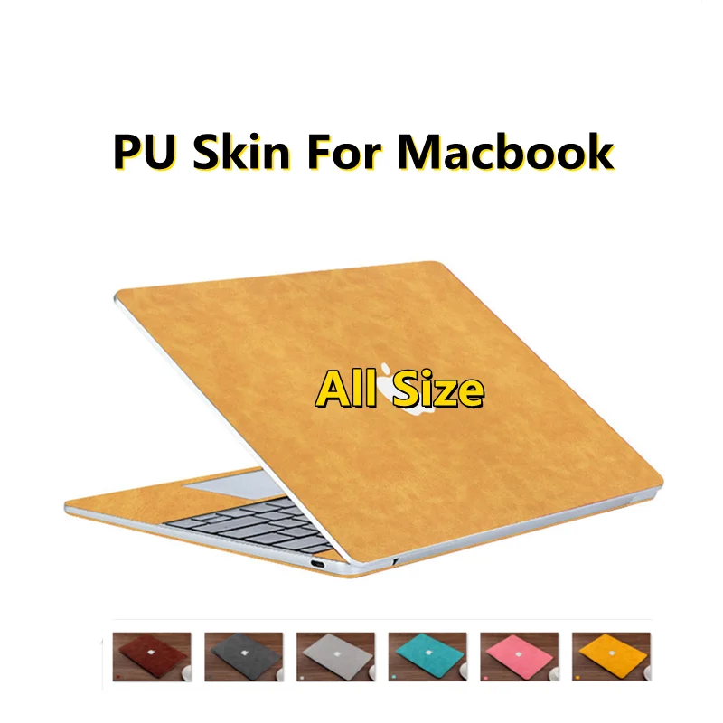 PU Skin Solid Cover Set For MacBook Air Pro 13 15" 16" A2779 A2337 A1466 A2941 A2338 A3114 Yellow Sticker Front Back Kits Reuse