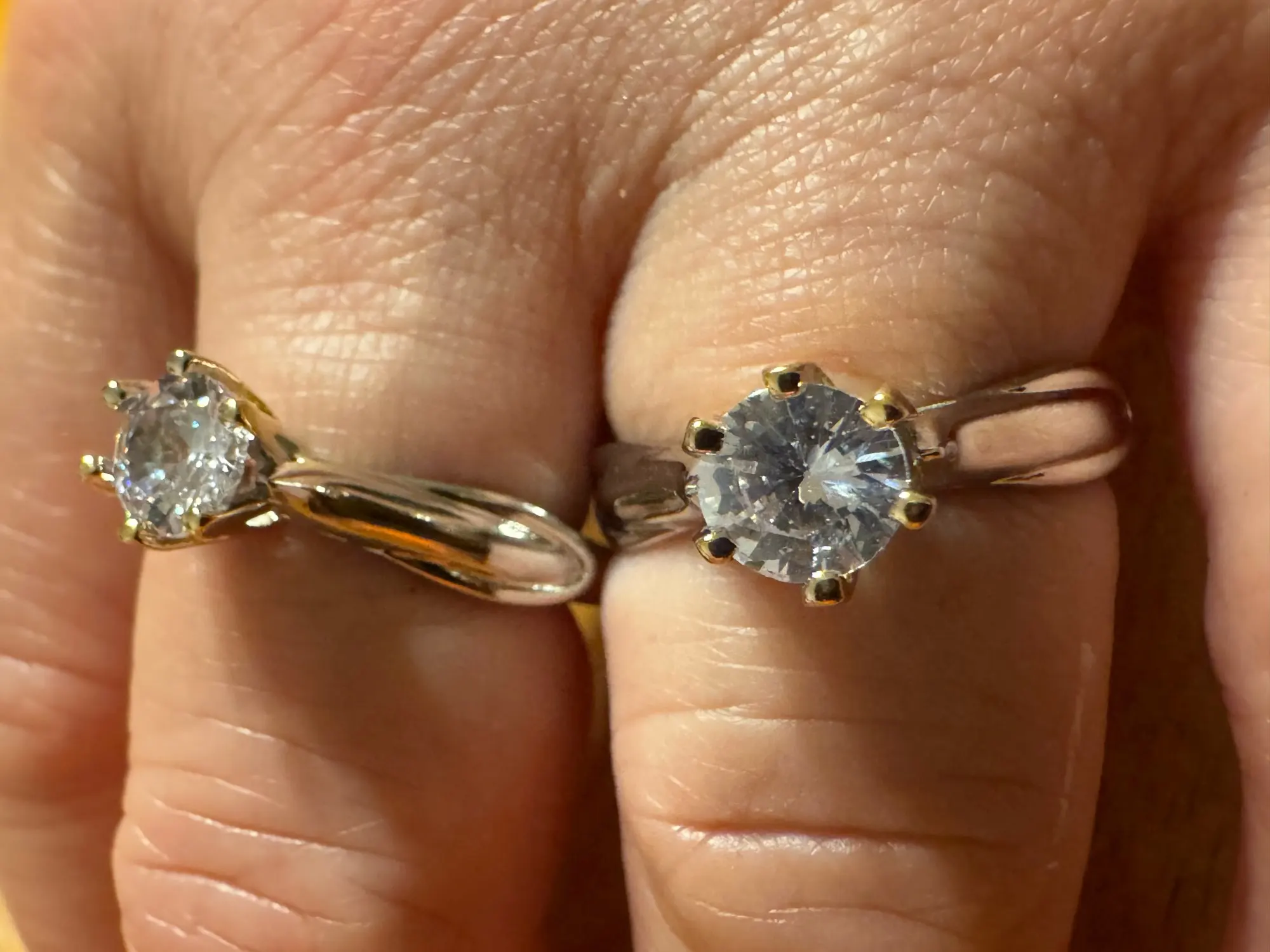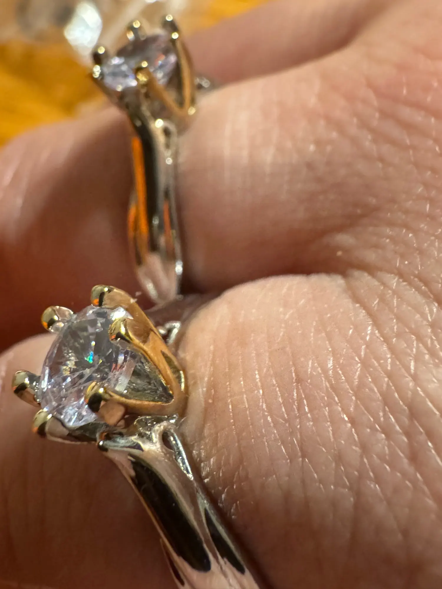 A very beautiful combination of white, yellow, and crystal. Bought two sizes so that they can be used on different fingers for different occasions. Satisfied with the purchase, I recommend it.
