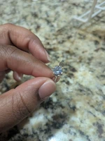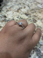 Beautiful ring and bigger than expected the moissanit diamond is very shiny and the ring look nice and has quality. I like it.