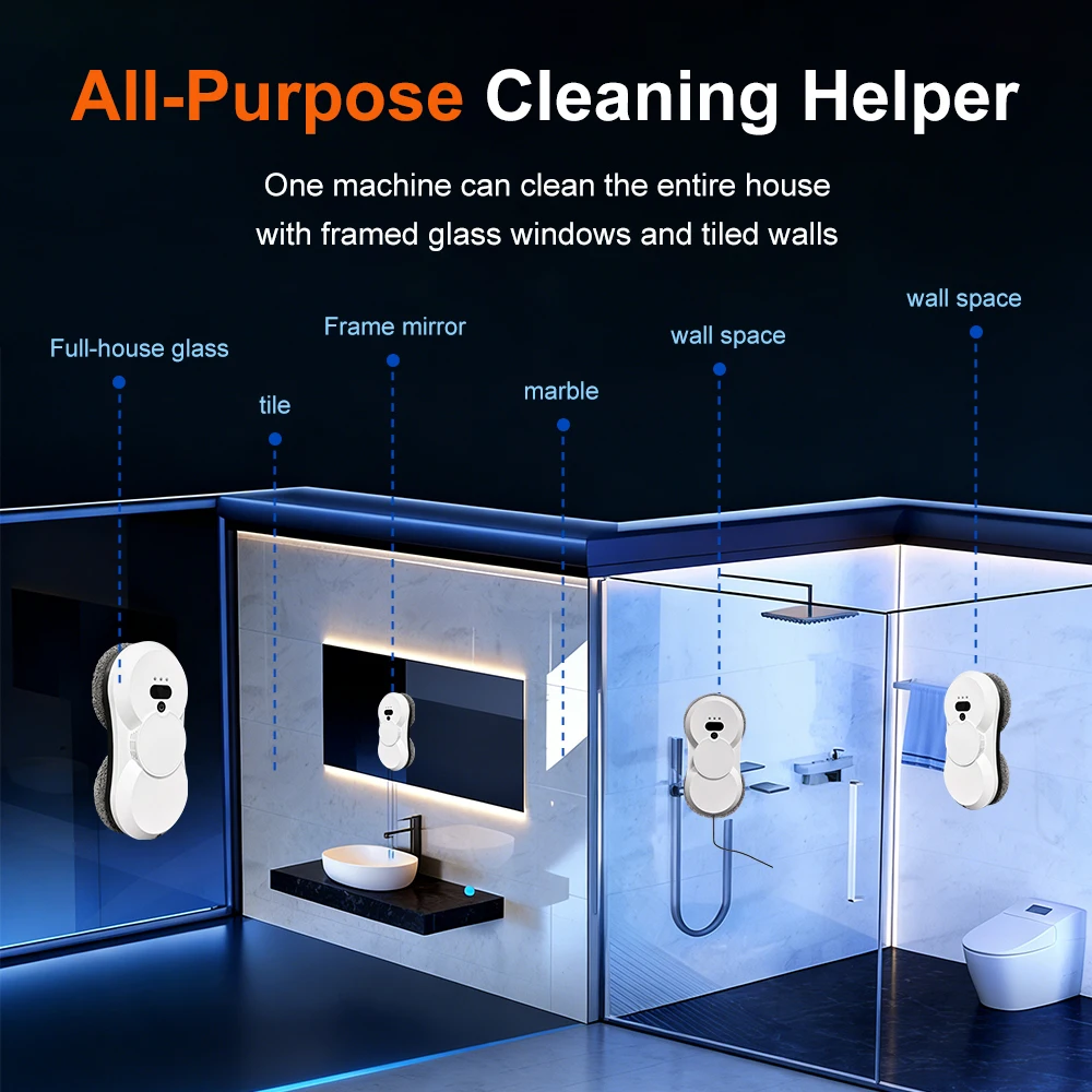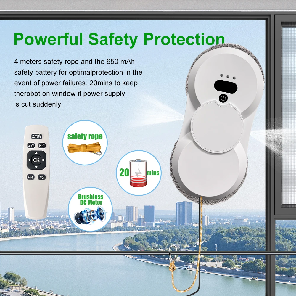 PuRuiKai Window Cleaning Robot, 5600Pa Suction,Two-way Automatic Spray 50ml Tank, Multiple Safety Systems,With Brushless motors