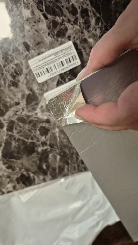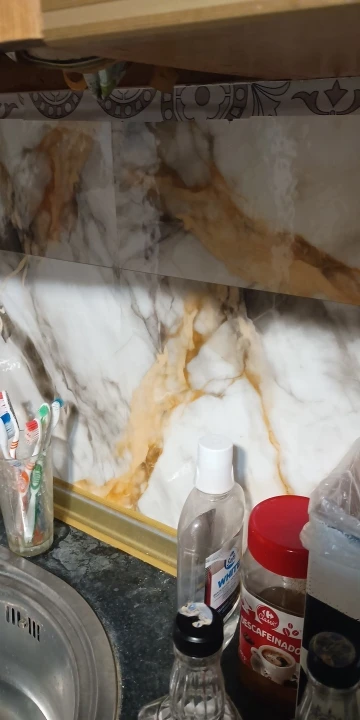 The kitchen looks great. You can easily peel it off if it doesn’t fit well at first, strong adhesive tape. Definitely recommended.