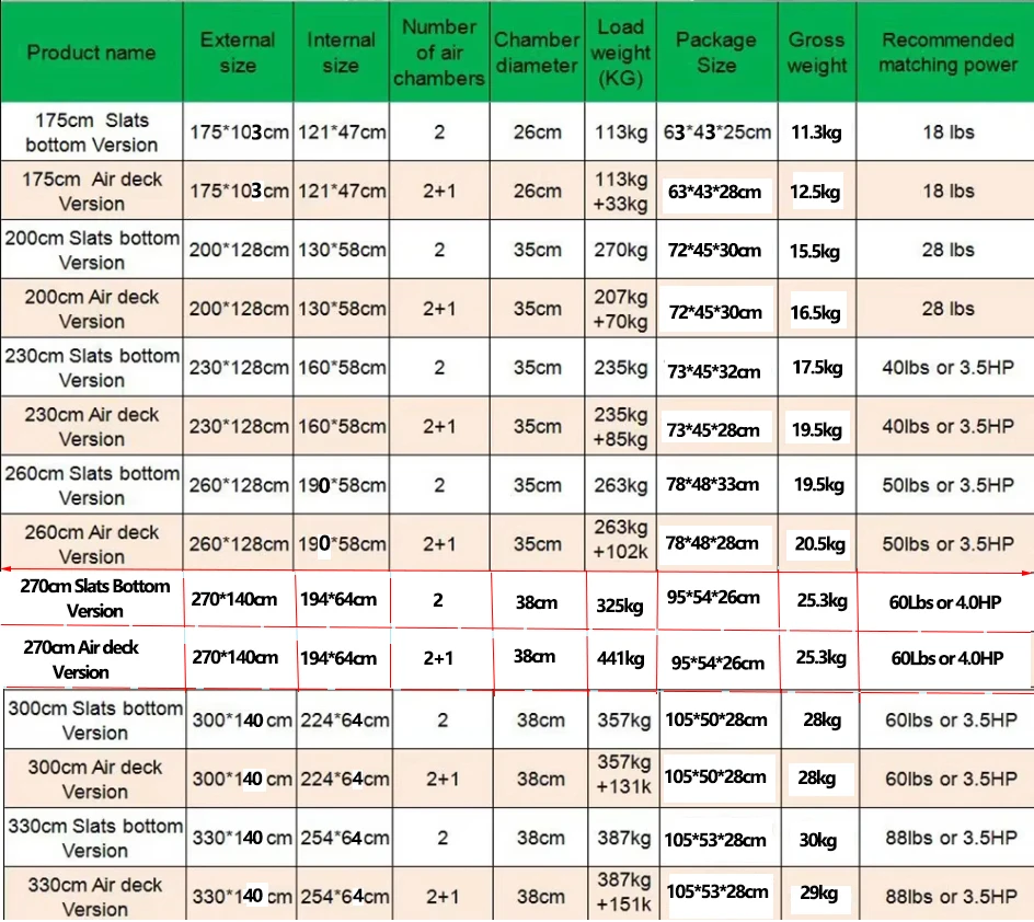 PVC thickness: 0.7 mm PVC of boat hull, 1.0mm PVC of Air deck bottom.