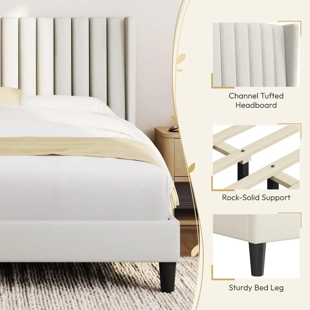 Classic Design Classic simple geometric wing side style, channel headboard, and skinfriendly linen fabric, the queen bed frame is a stunning decor for your bedroom furniture, seriously upgrading your room39s aesthetic