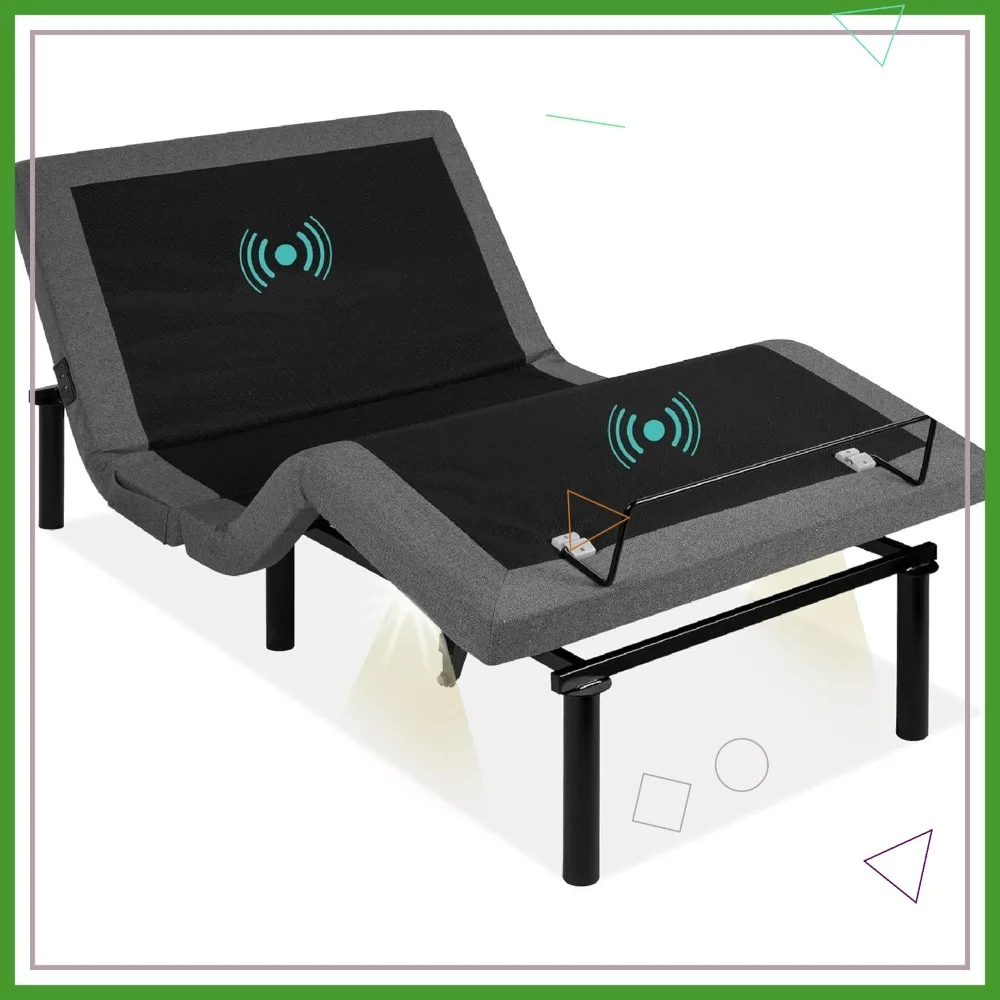 Queen Size Electric Adjustable Bed Frame with Wireless Remote, Massager, USB Ports & Nightlight