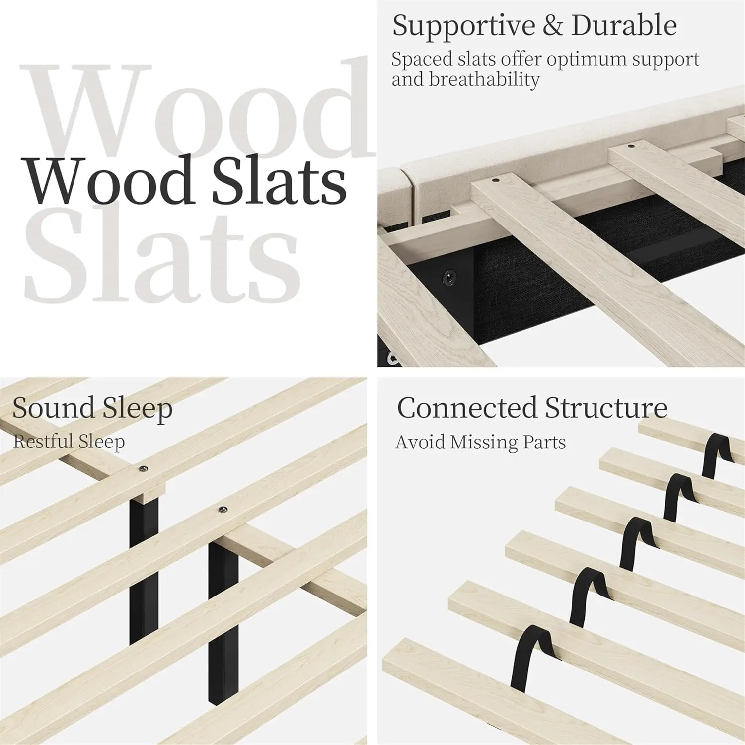 Queen Upholstered Platform Bed Wingback Tufted Headboard Wooden Slat Support No Box Spring Needed Beige Customized