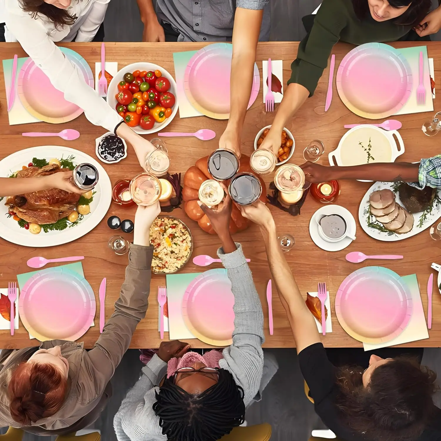 • Versatile: Disposable rainbow-colored plates and napkins party supplies are perfect for birthday parties, rainbow parties, bachelorette parties, ice cream parties, graduations, anniversaries, engagements, weddings, baby showers, bridal showers, Thanksgiving parties, Christmas parties, family gatherings and more.