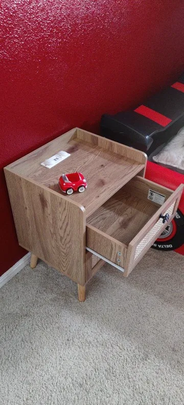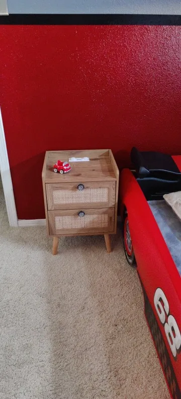 3 reviews for Rattan Nightstand with Charging Station, Rustic Bedside Table with 2 Drawers, Natural Nightstand for Bedroom