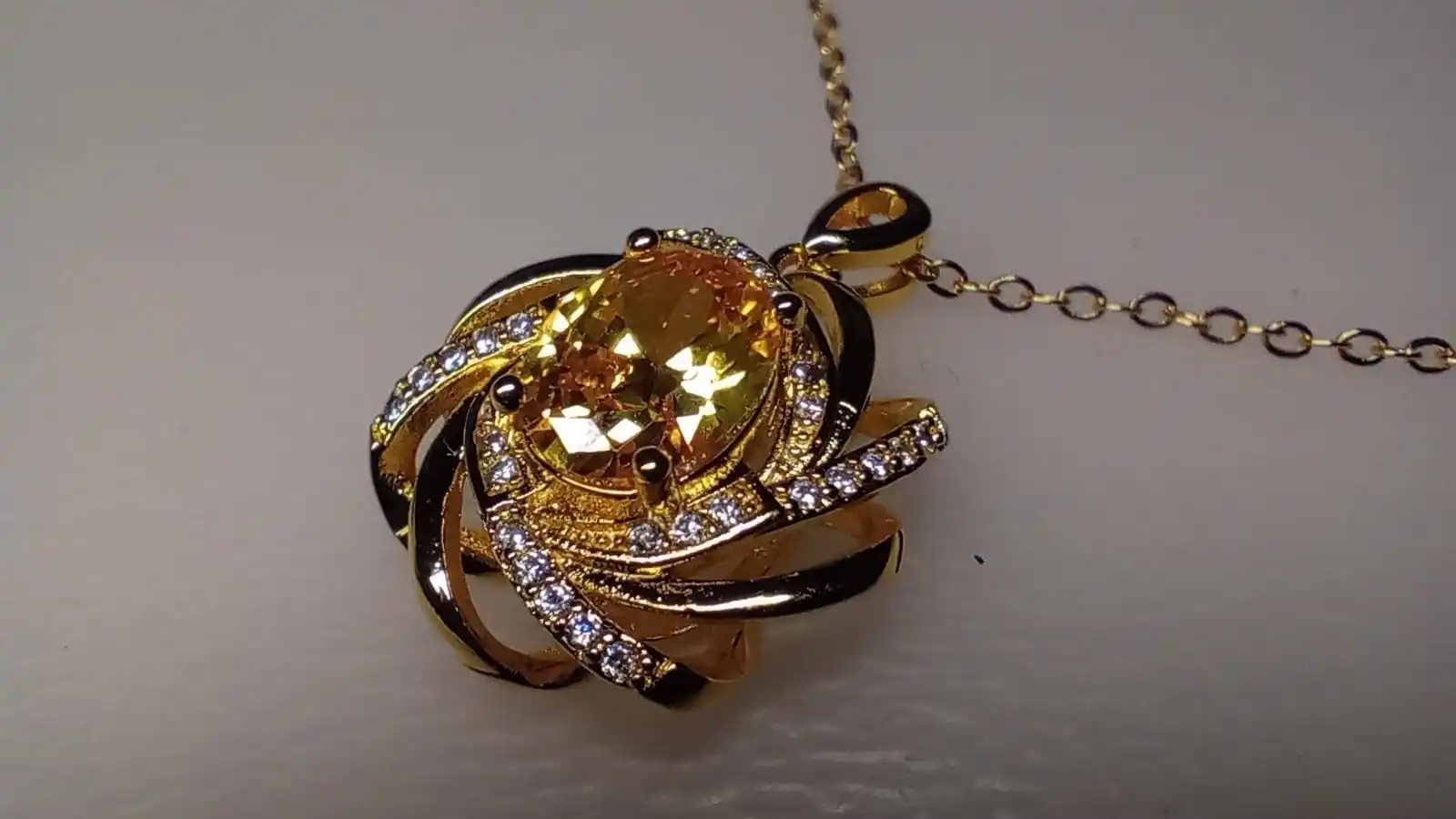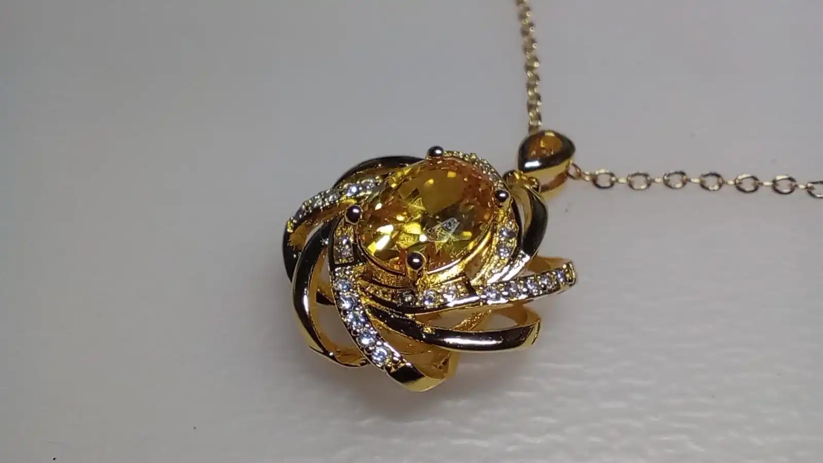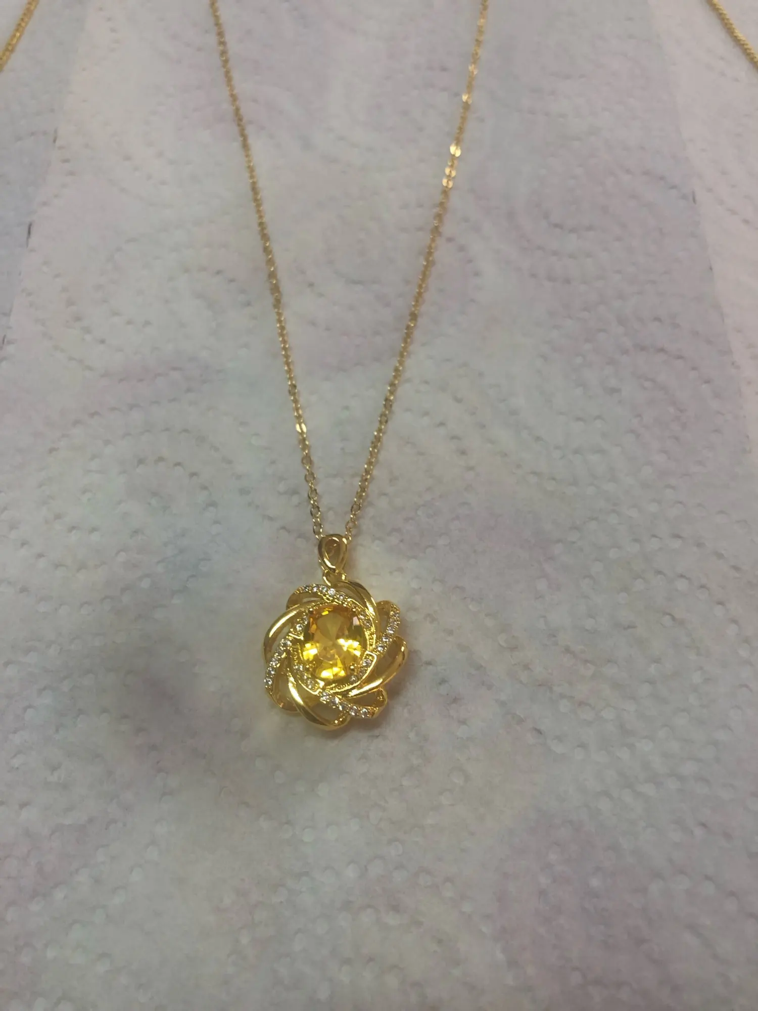 Thank you to the Seller for the quick shipment and safe packaging. The stone is clean from inclusions, effectively refracts sunlight, the yellow color of the stone and the gold color of the pendant and necklace blend beautifully. Wearing it wonderfully adds positive energy.